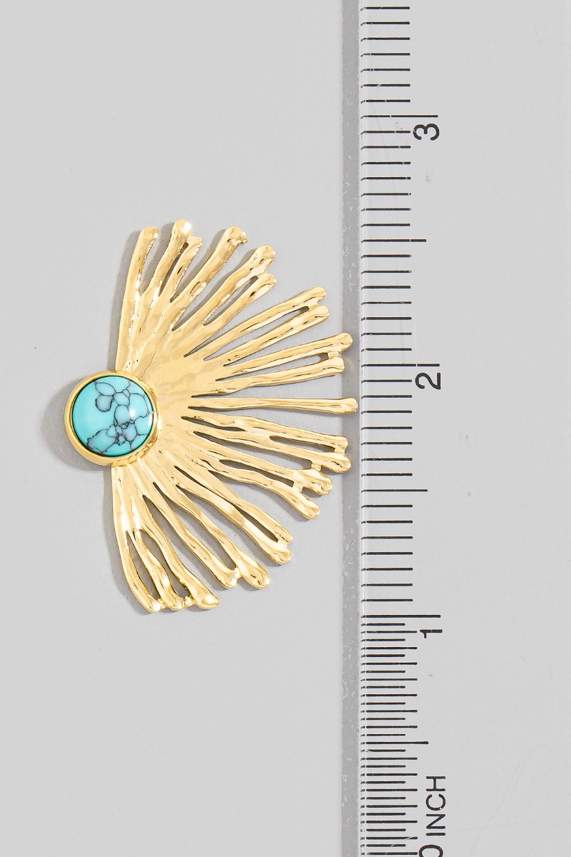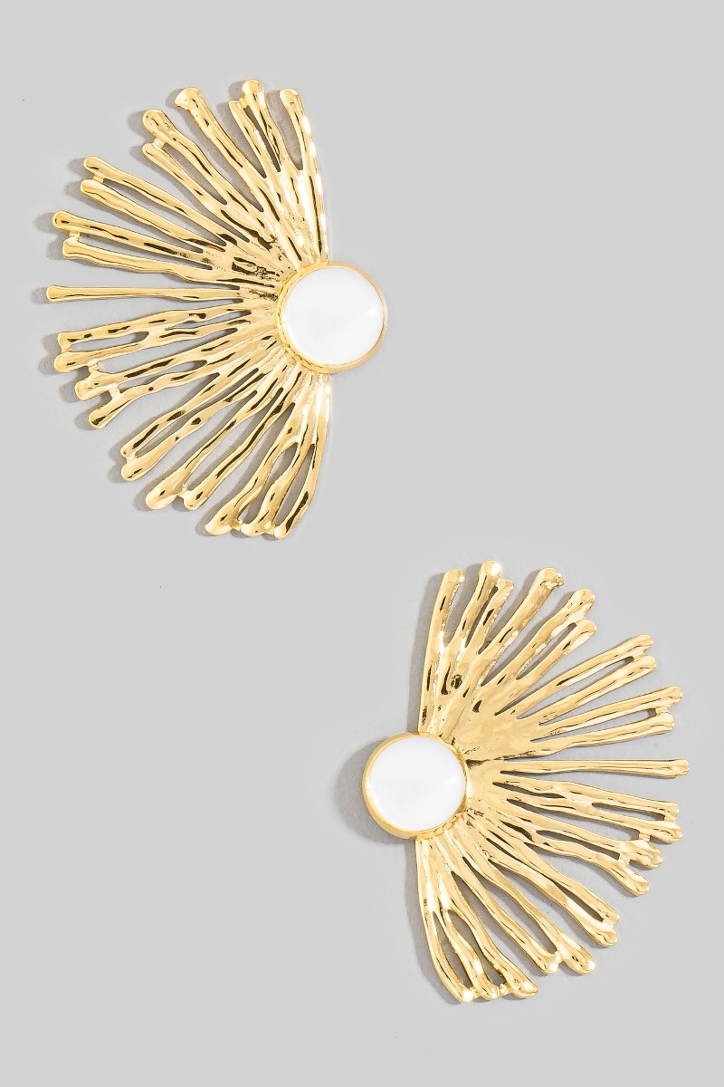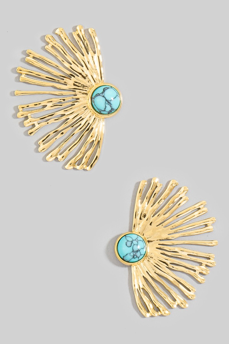 - This pair of earrings introduces a unique stainless steel stone center fan statement style. Savor the craftsmanship that goes beyond the ordinary, as this pair of earrings effortlessly captivates attention.