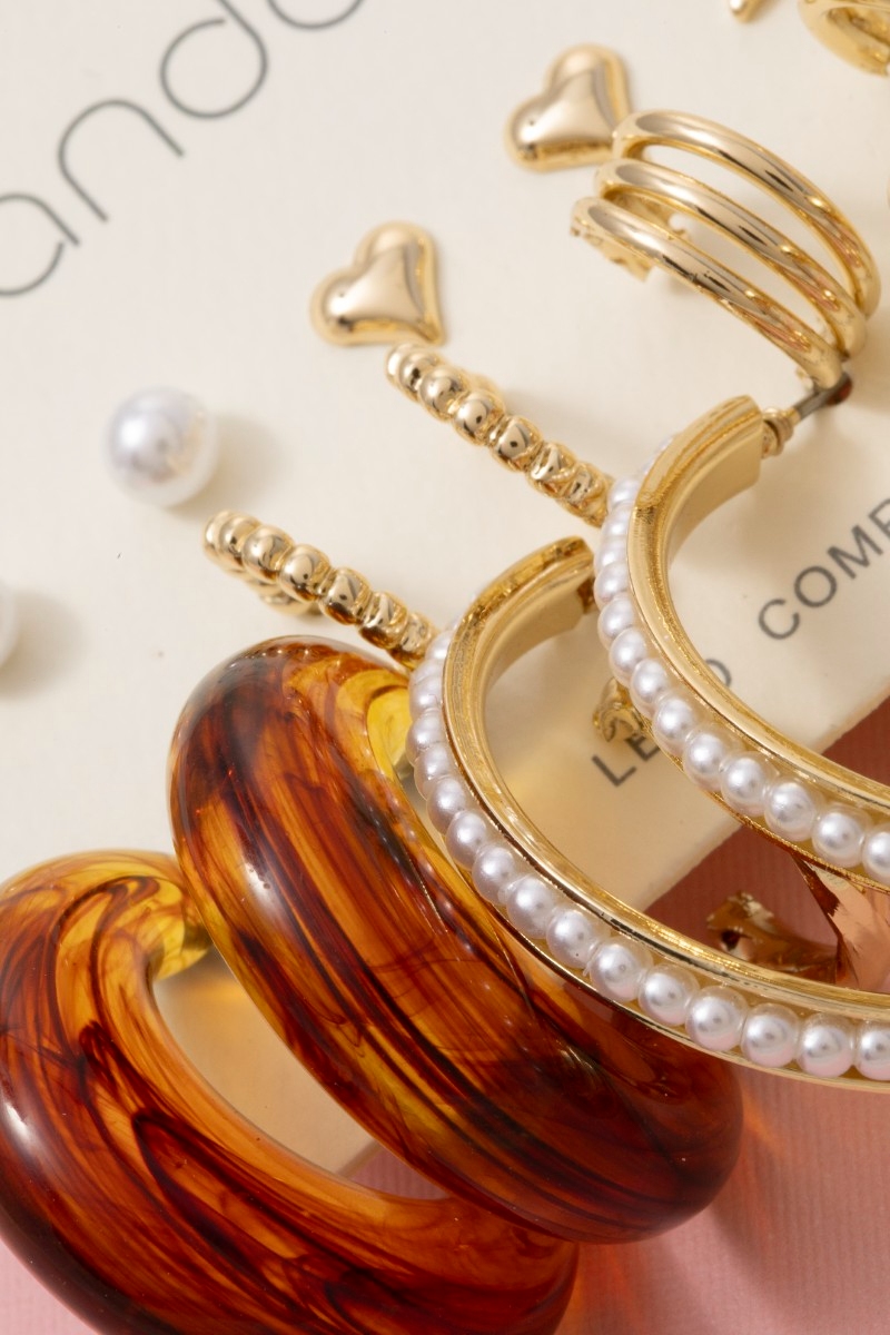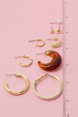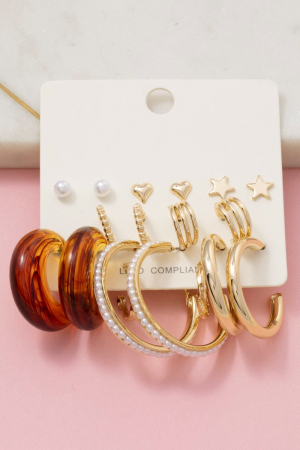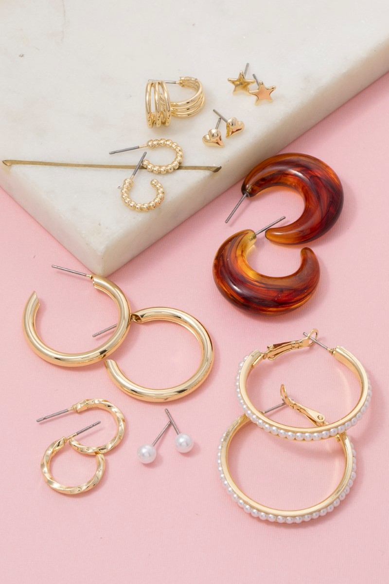 • This pair of earrings displays a vibrant stars hearts and pearls 10 pair set style. Immerse yourself in fashion finesse with this statement pair of earrings.