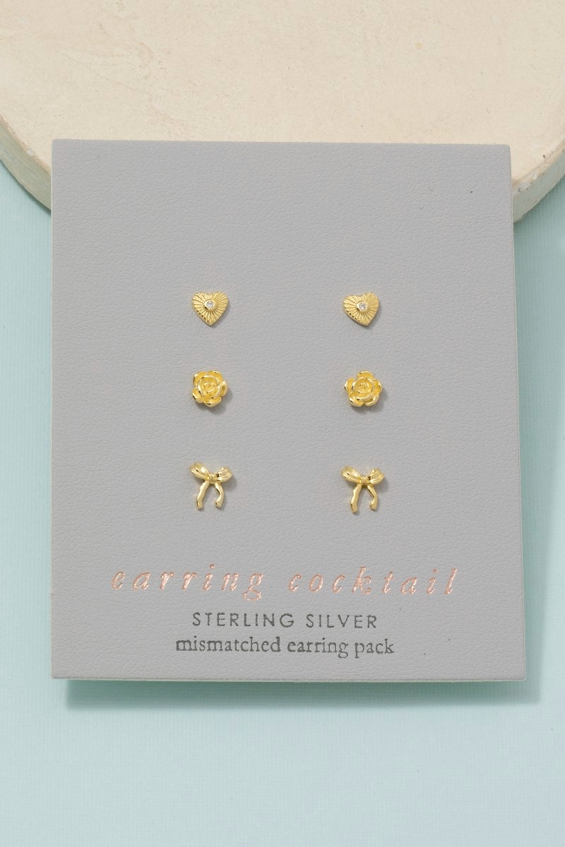 - This pair of stud earrings introduces a unique sterling silver heart bow flower set style. Elevate your ensemble with this chic, timeless pair of stud earrings.