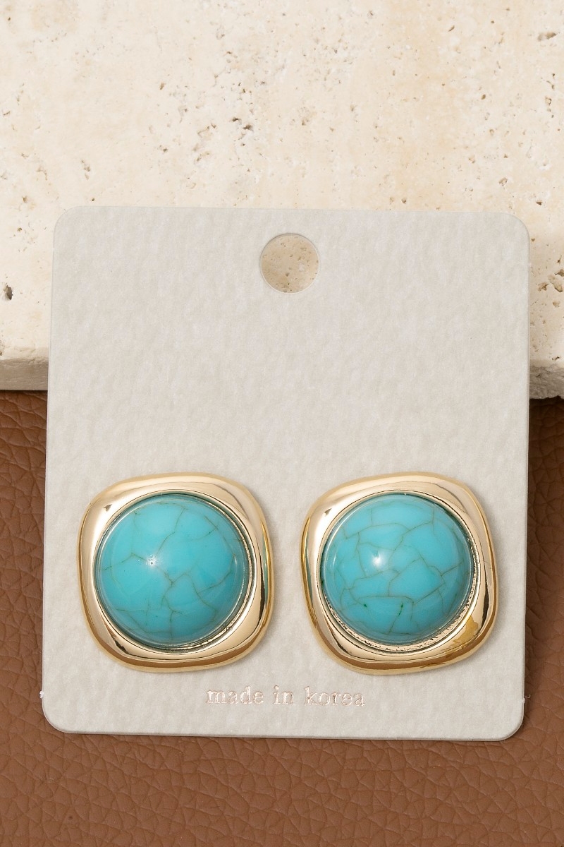 • This pair of stud earrings displays a vibrant stone dome style. Immerse yourself in fashion finesse with this statement pair of stud earrings.