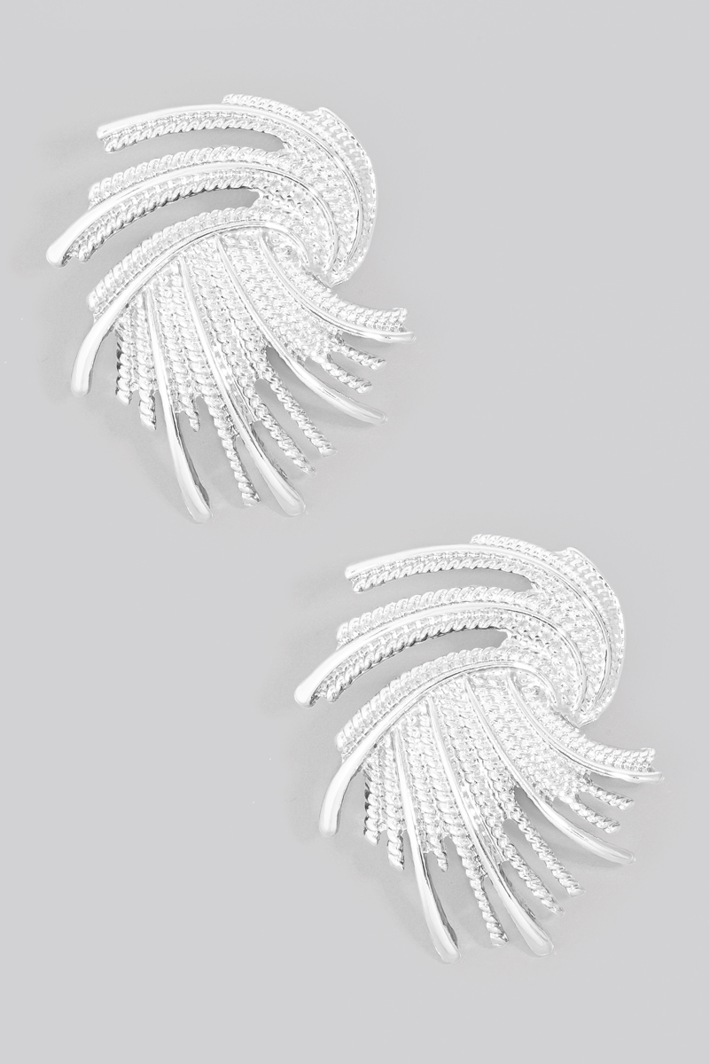 • This pair of earrings introduces a stunning textured metallic swirl shield style. Indulge in the artistry of accessorizing with this unique piece.