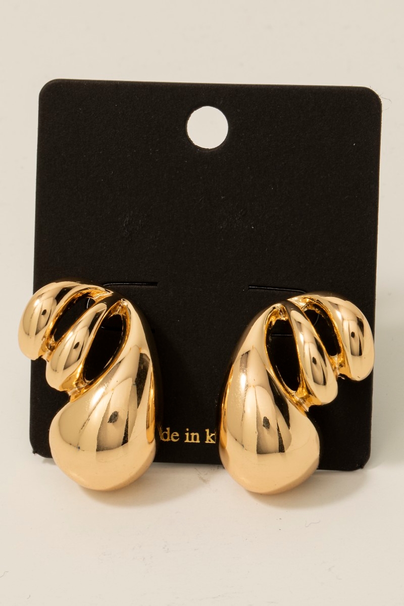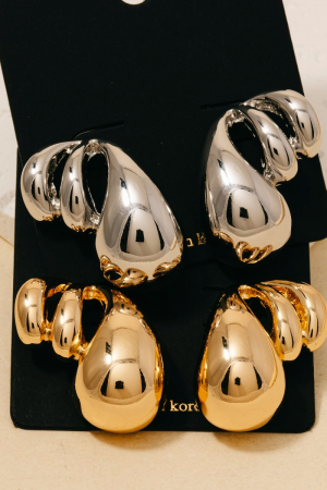 - This pair of stud earrings brings a luxurious triple metallic tear layered style. Experience refined sophistication with this understated yet stylish piece.