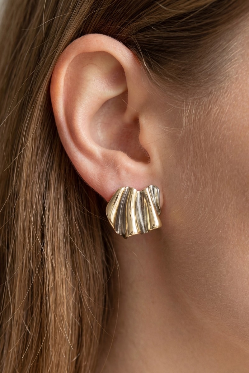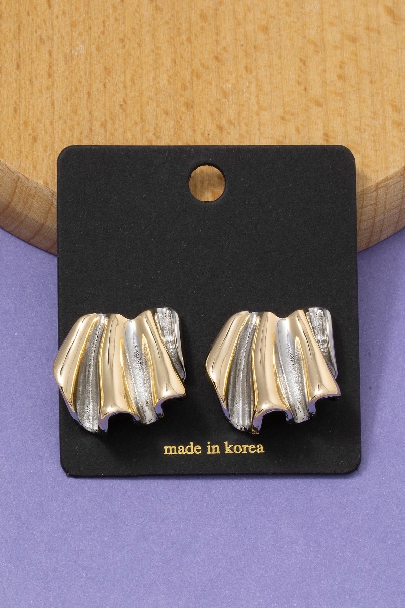 - This pair of earrings brings a luxurious two tone sculpted statement style. Redefine your look effortlessly with this standout, on-trend piece.