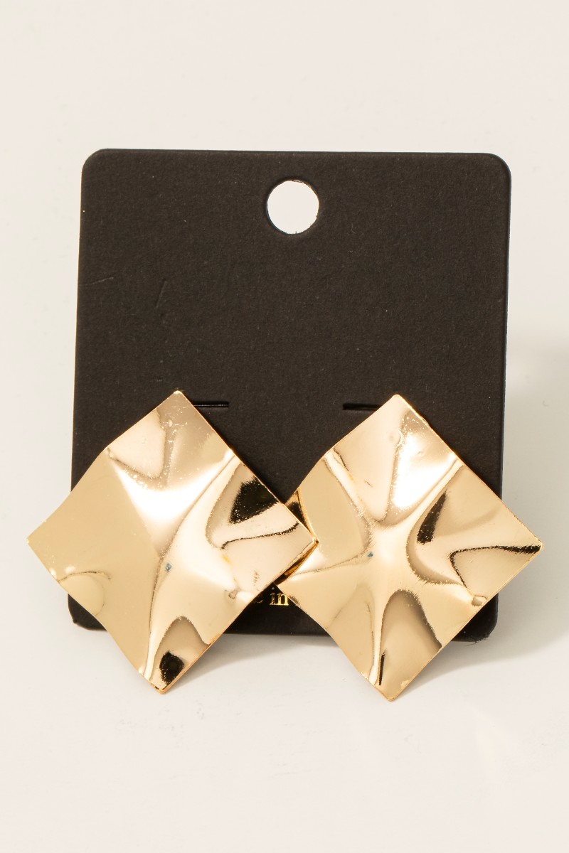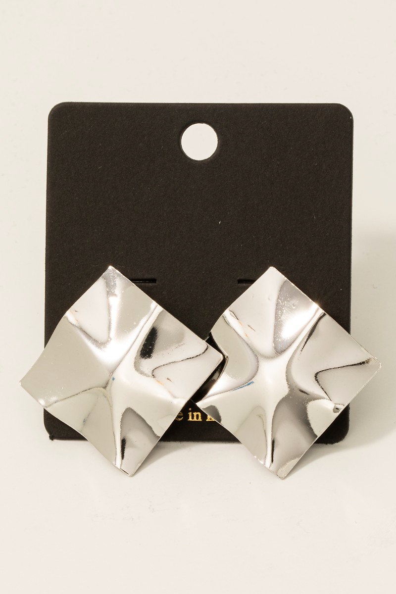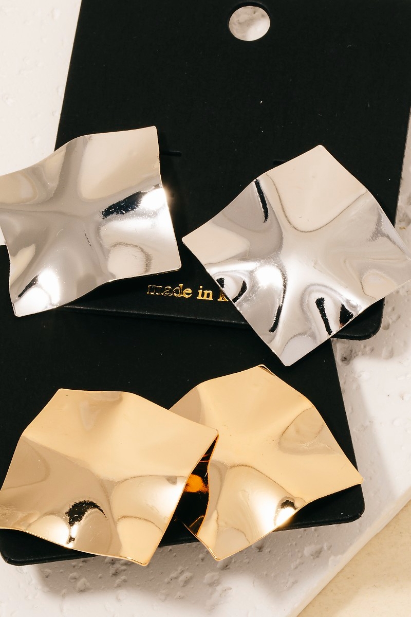 - This pair of stud earrings showcases a timeless wavy square shield style. Embark on a journey of sartorial refinement as this pair of stud earrings effortlessly complements your fashion sense.