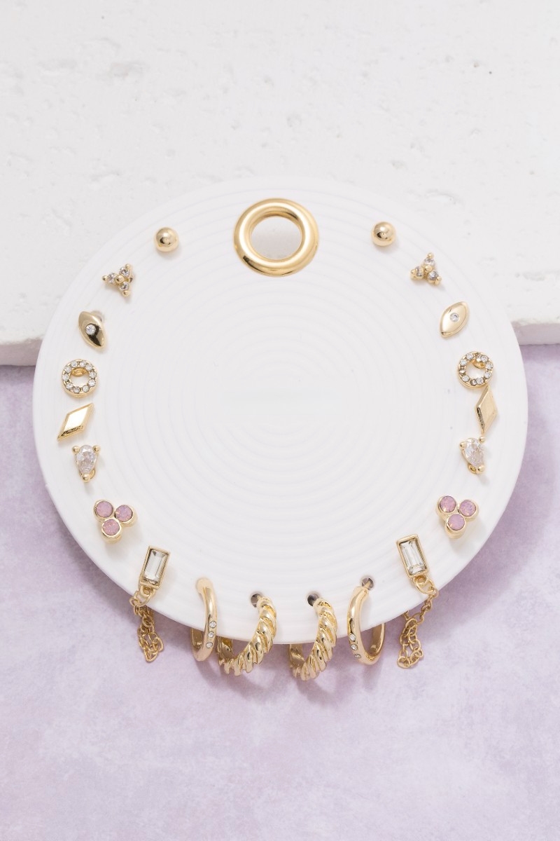 - This pair of earrings brings a luxurious ten pair assorted mini set style. Experience refined sophistication with this understated yet stylish piece.