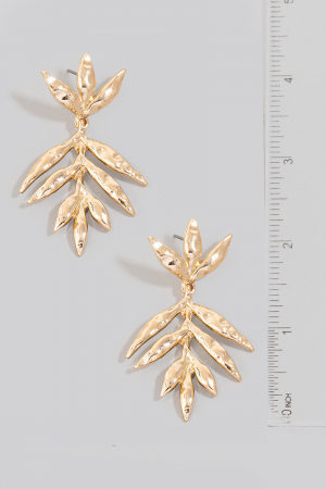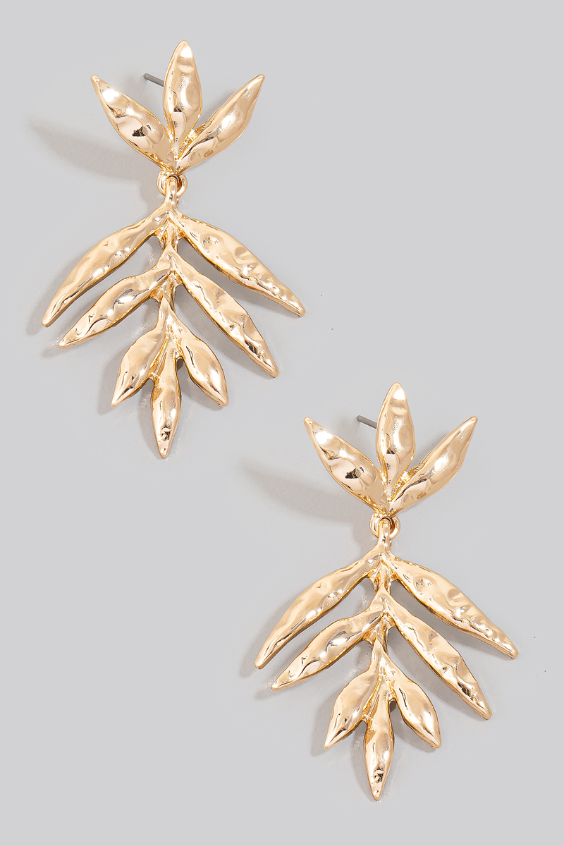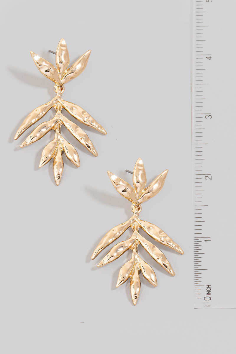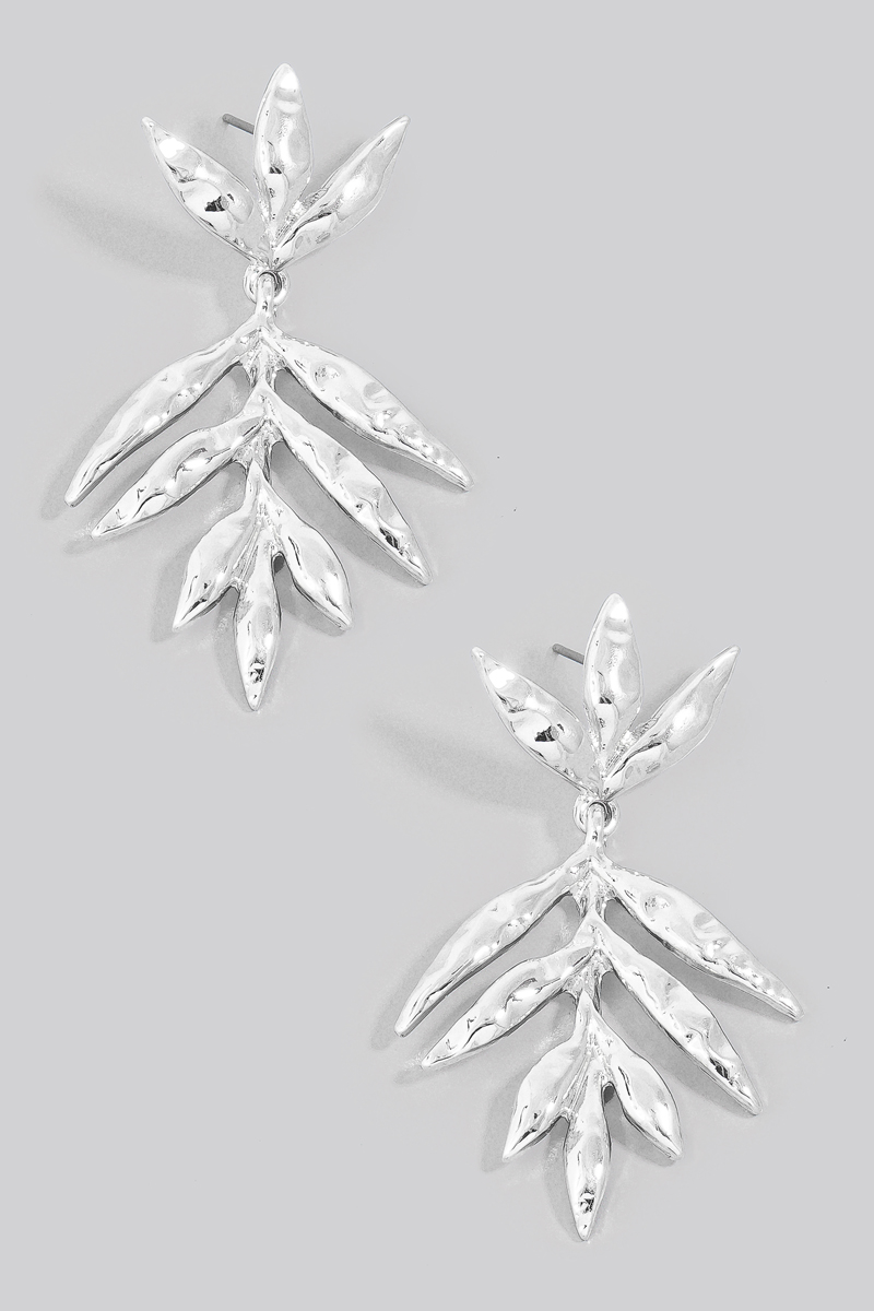• This pair of dangle earrings displays a vibrant textured long leaf style. Delight in the nuanced details that make this pair of dangle earrings a testament to fine design and impeccable taste.