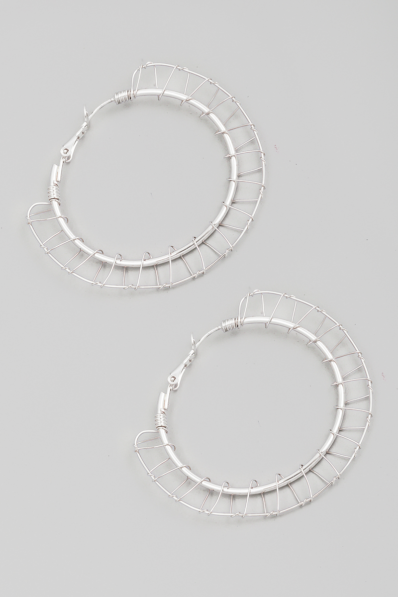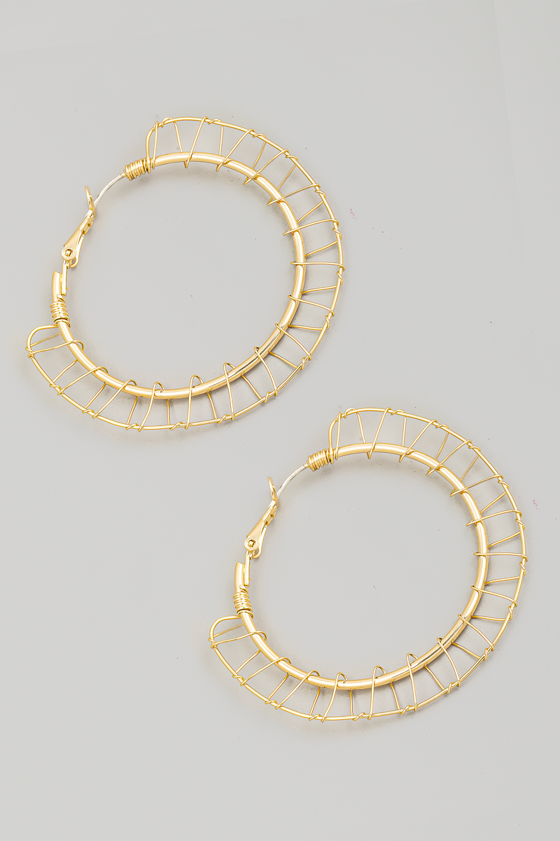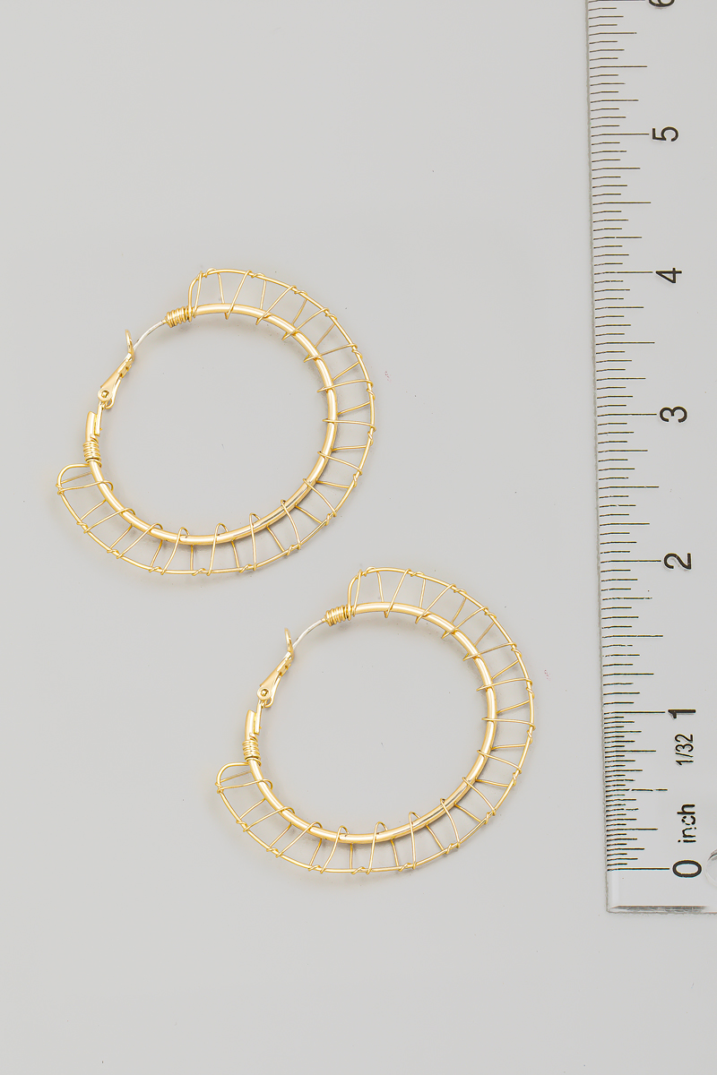 • This pair of hoop earrings features a fashionable thin wire frame style. Immerse yourself in the details of design, as this accessory effortlessly becomes a conversation starter.