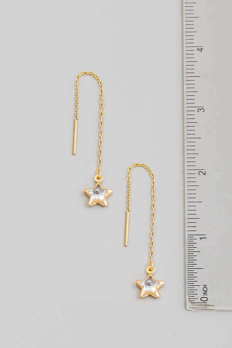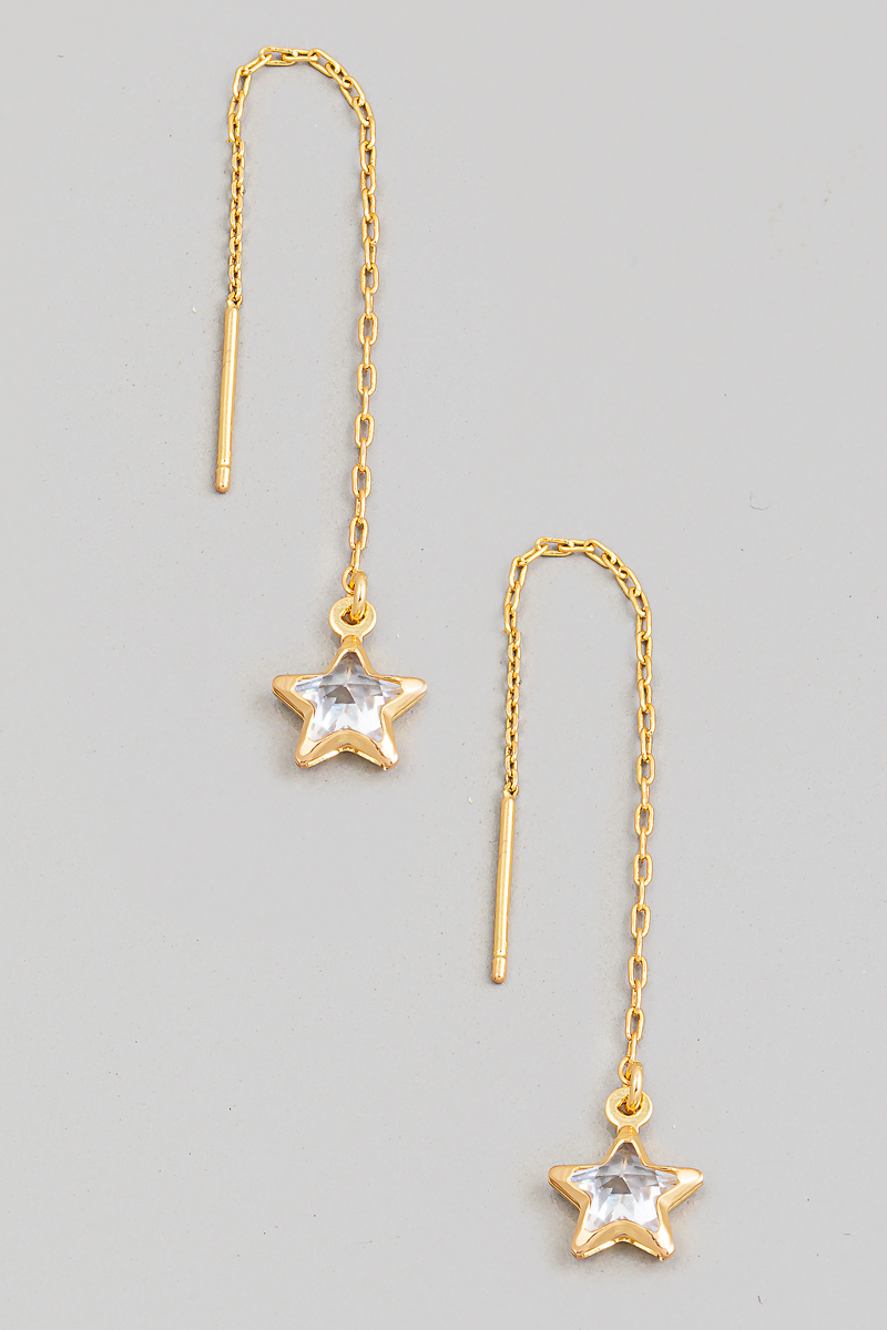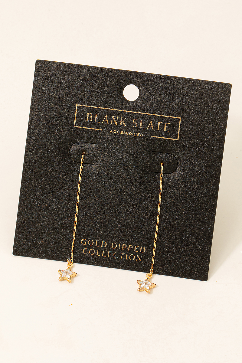 - This pair of earrings brings a unique gold dipped star gem threader earrings style. Indulge in the artistry of accessorizing with this unique piece.