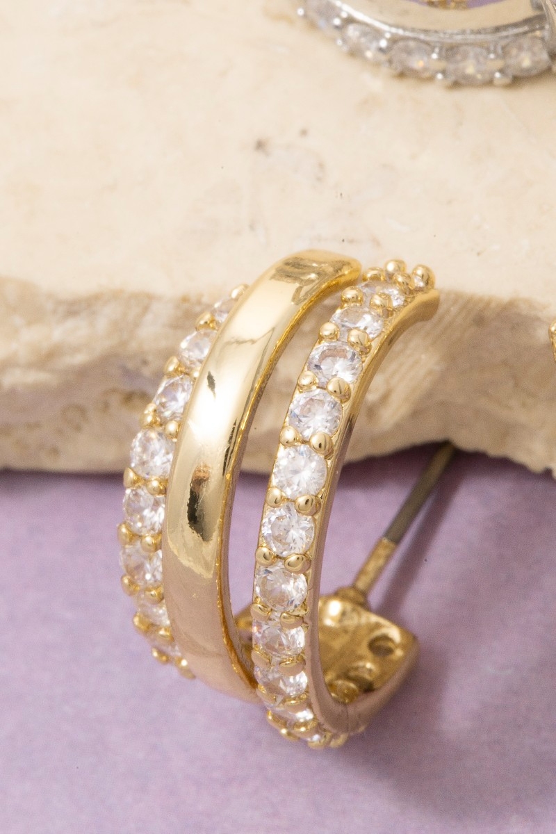 - This pair of earrings displays a vibrant three layer c hoop cubic zirconia style. Immerse yourself in the details of design, as this pair of earrings effortlessly becomes a conversation starter.