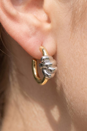 - This pair of hoop earrings introduces a unique two-tone with floral accent style. Celebrate individuality with this pair of hoop earrings that effortlessly expresses your unique sense of style.