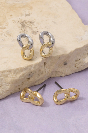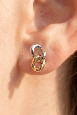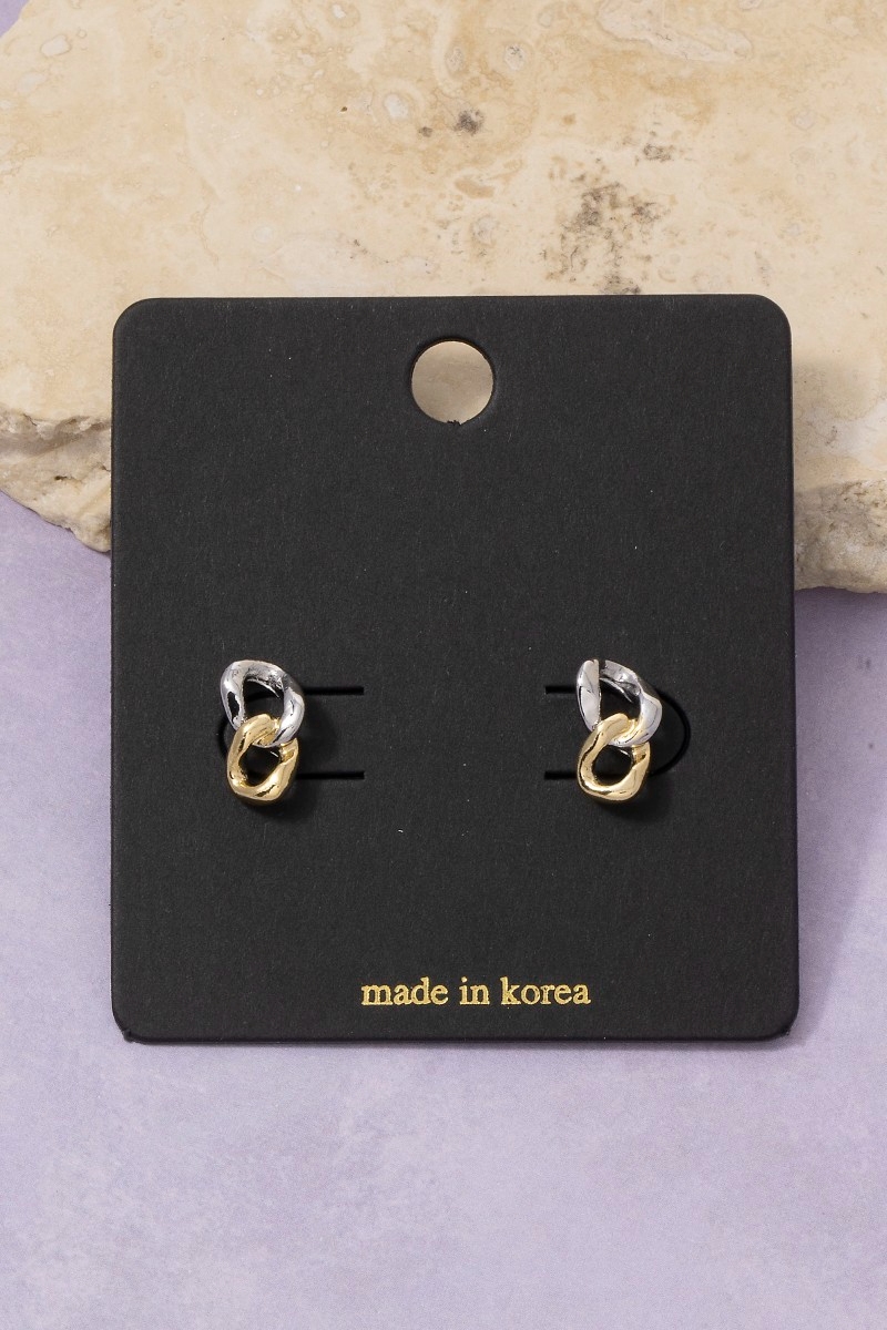 - This pair of stud earrings brings a stunning two-tone interlocked oval link style. Explore a refined sense of style with this pair of stud earrings, seamlessly elevating the chic factor of your look.