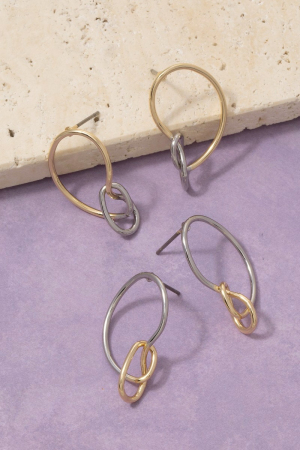 • This pair of drop earrings introduces a unique two tone linked circle & oval ring style. Delight in the intricate details that make this pair of drop earrings an essential element in expressing your fashion identity.
