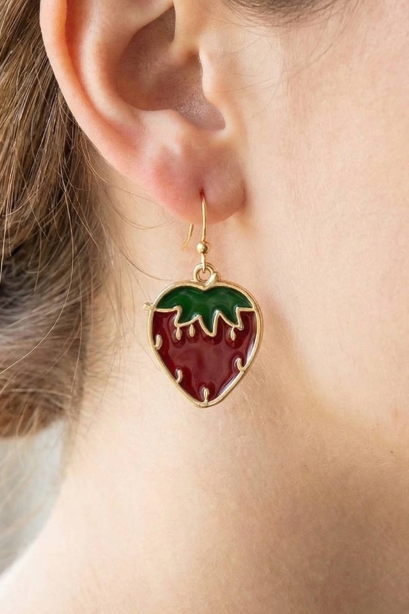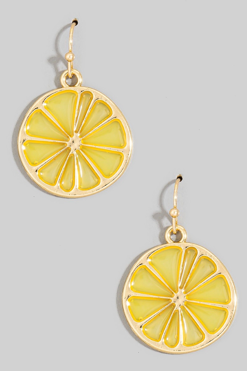 - This pair of earrings brings a unique vibrant resin fruit dangle hook style. Indulge in the allure of exquisite craftsmanship as this pair of earrings effortlessly adds a touch of luxury to your attire.