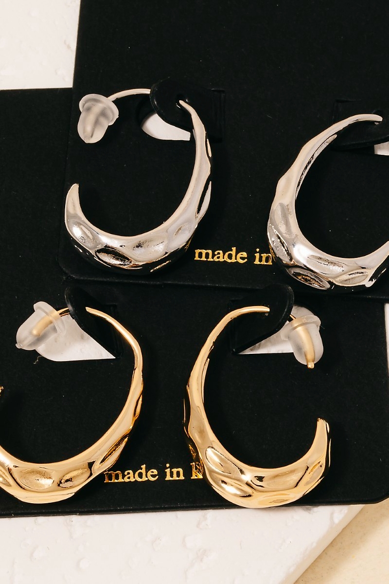 - This pair of hoop earrings brings a unique warped metallic oval threader style. Immerse yourself in the details of design, as this pair of hoop earrings effortlessly becomes a conversation starter.