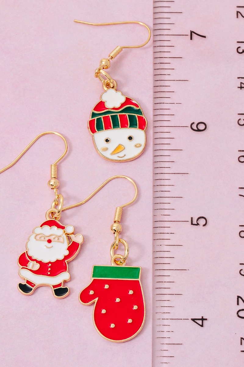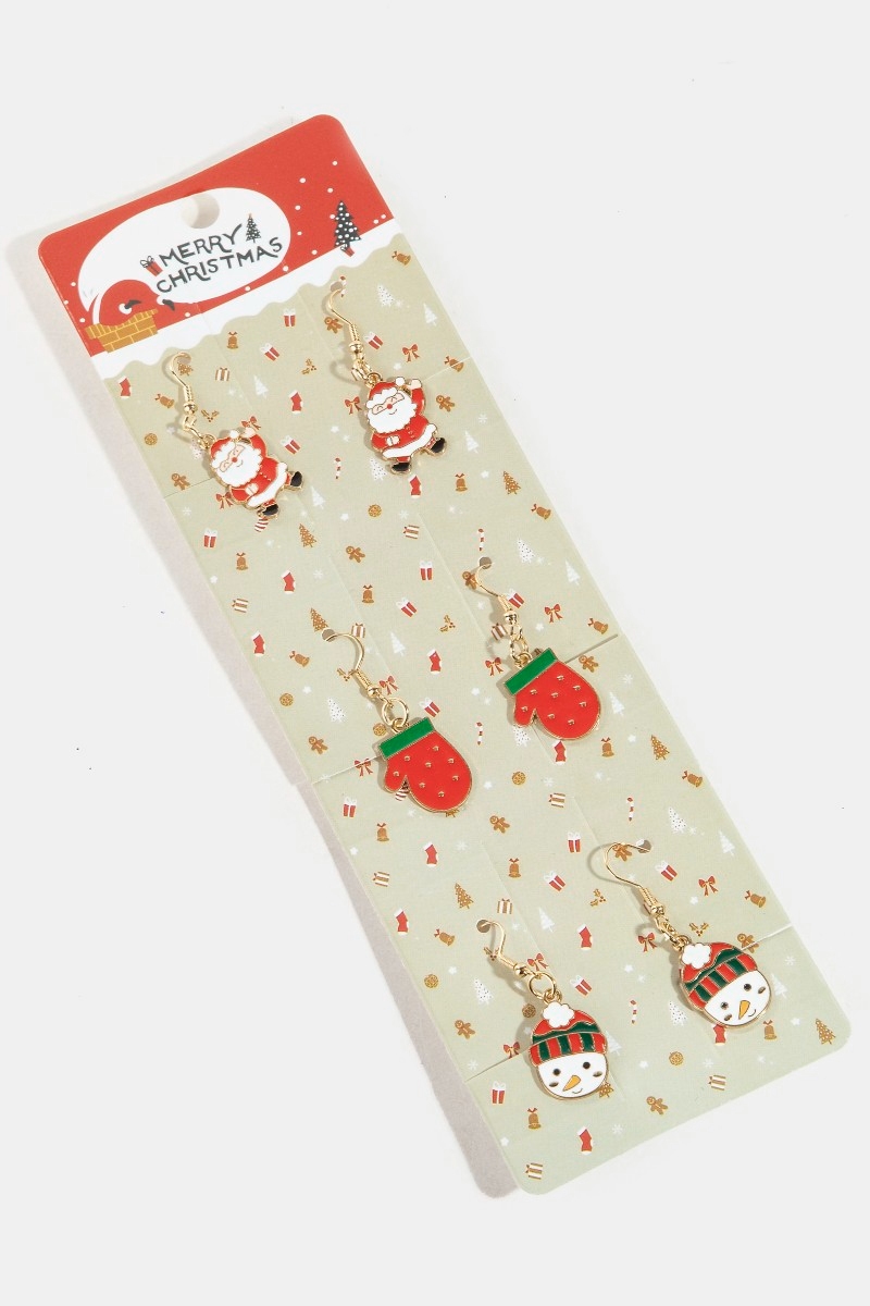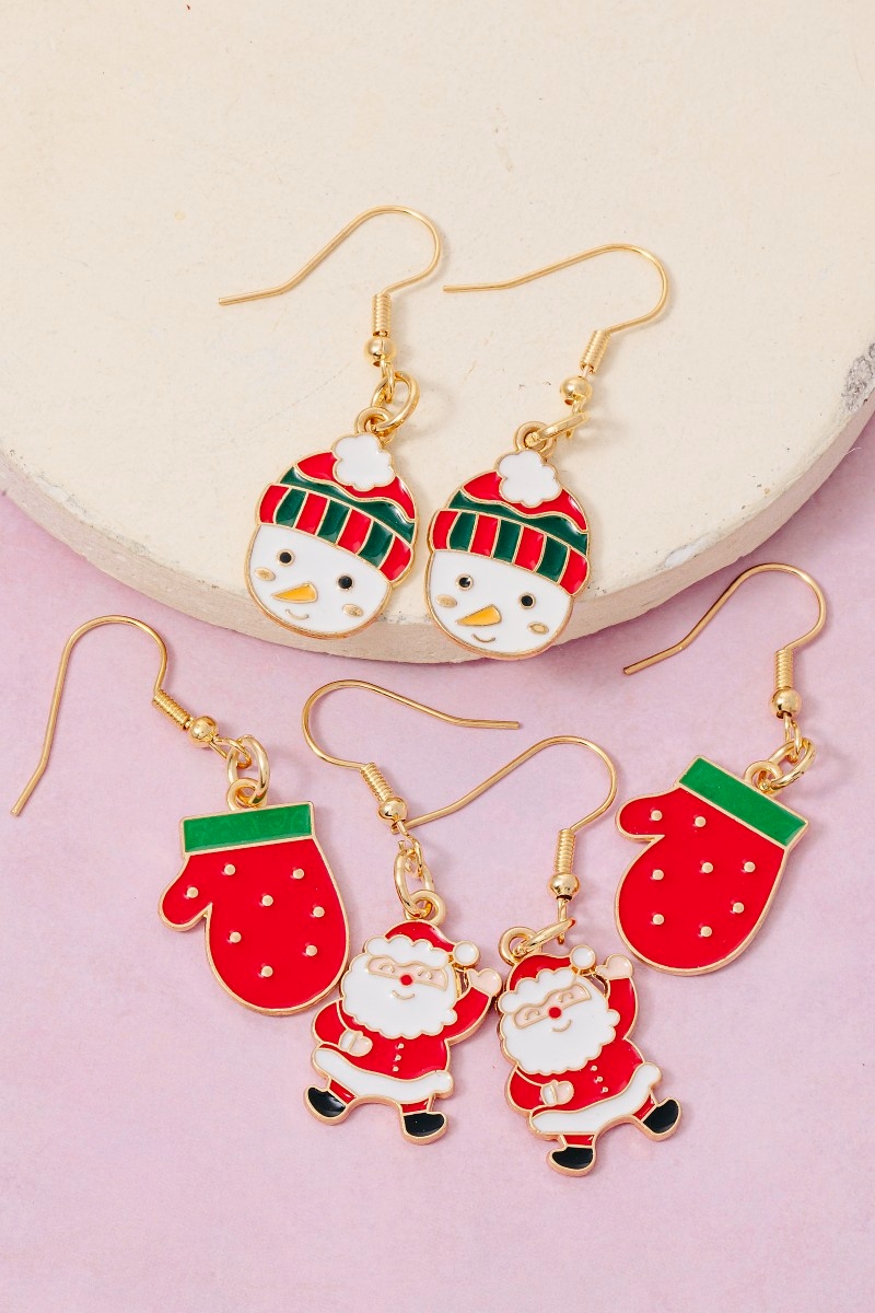• This pair of dangle earrings adds a modern 3pc assorted christmas enamel set style. Immerse yourself in the world of understated glamour as this pair of dangle earrings effortlessly exudes timeless appeal.