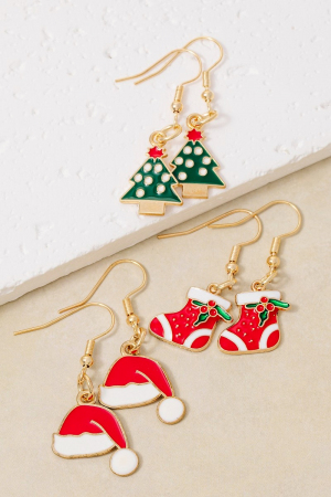 - This pair of dangle earrings features a fashionable 3pc christmas enamel set style. Experience refined sophistication with this understated yet stylish piece.