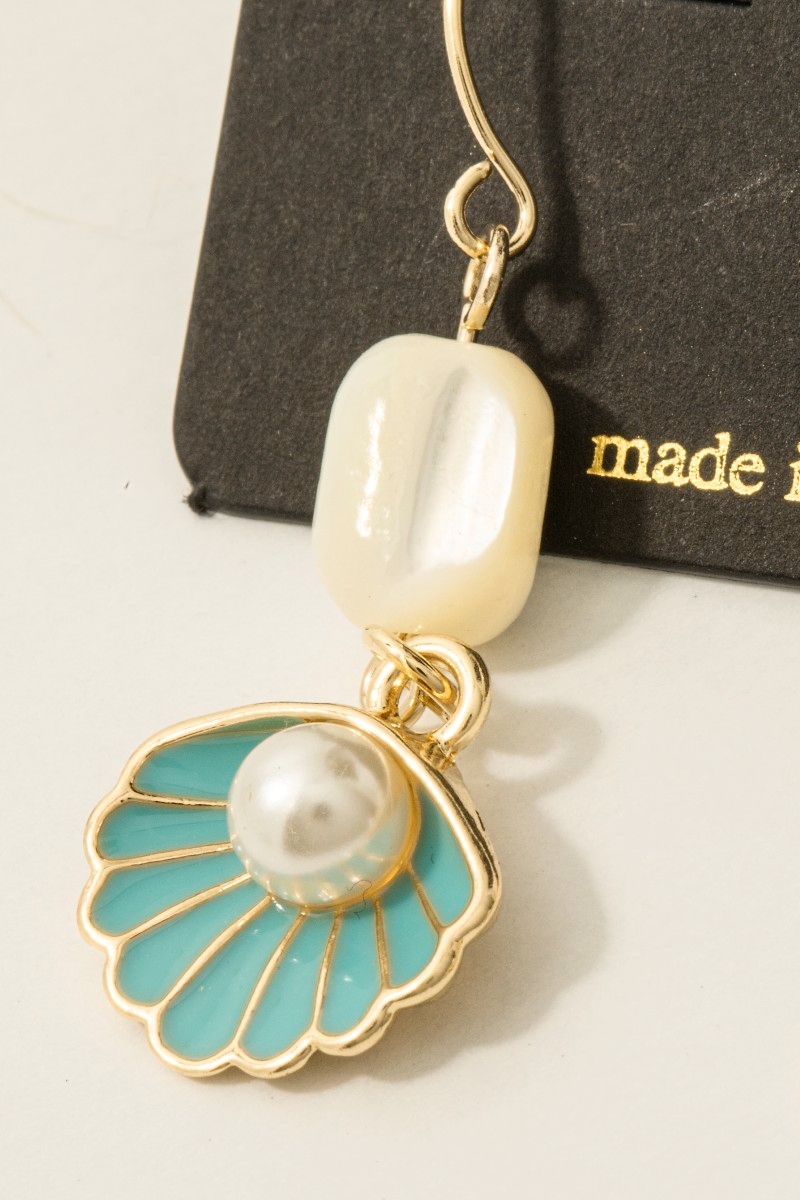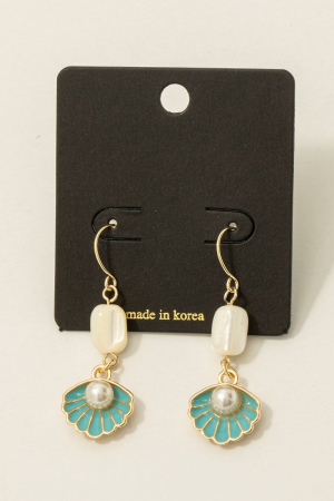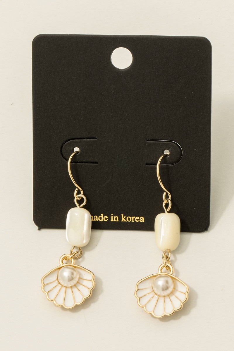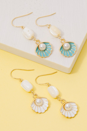 - This pair of drop earrings displays a fashionable enamel seashell pearl style. Celebrate individuality with this pair of drop earrings that effortlessly expresses your unique sense of style.