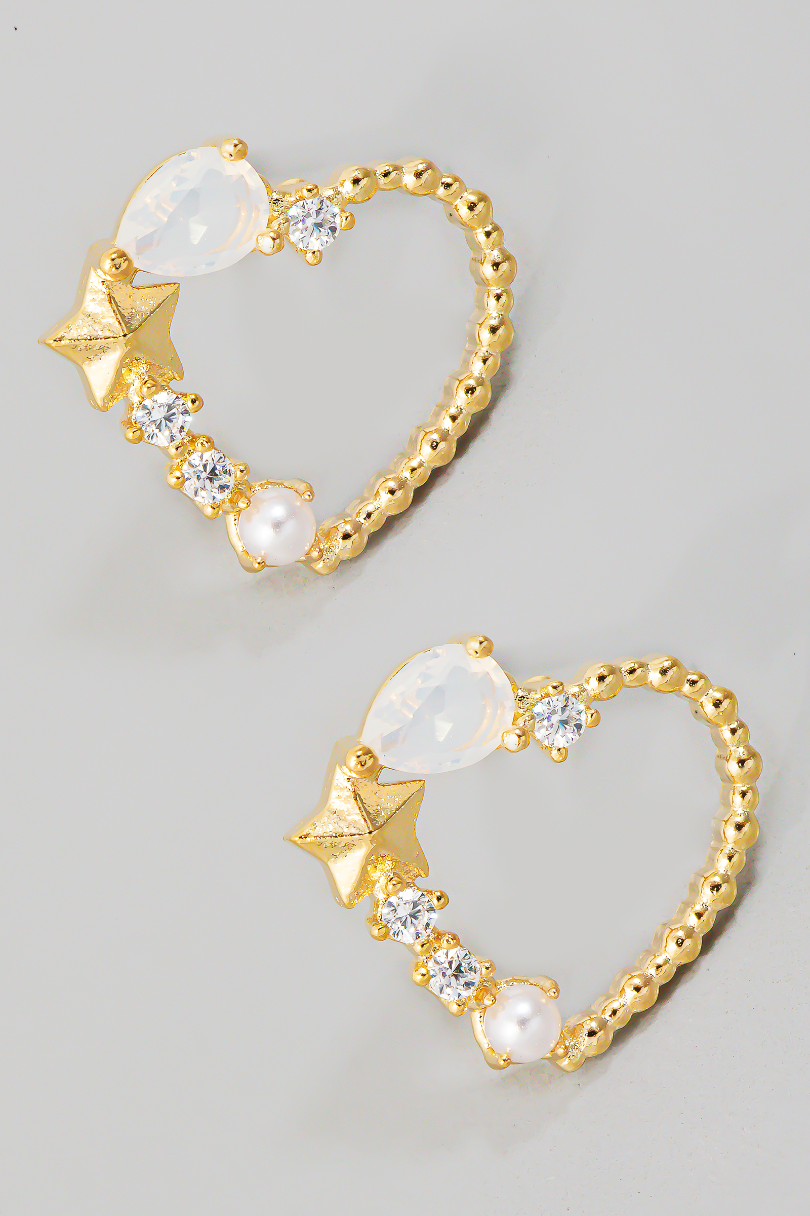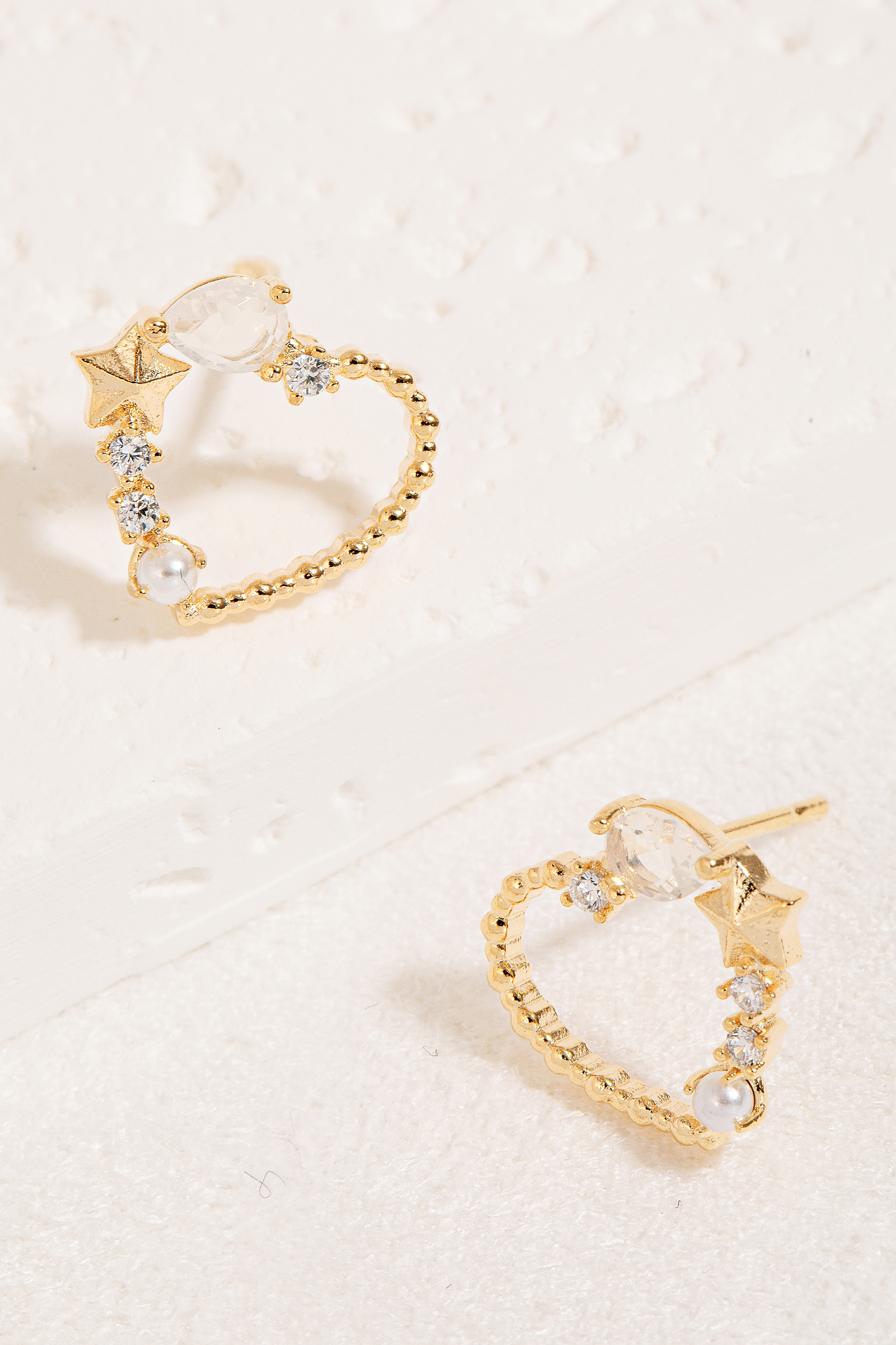 • This pair of stud earrings displays a fashionable rhinestone cluster heart style. Unveil modern elegance with this subtly intricate accessory.