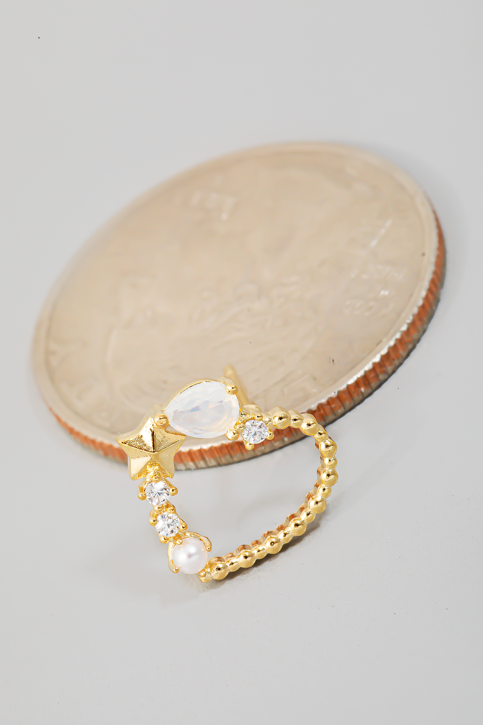 Mixed Pearl And Metallic Beaded Elastic Bracelet