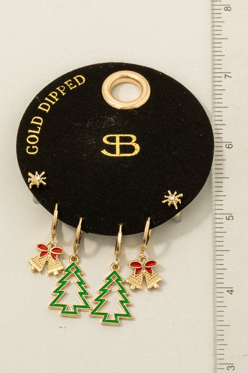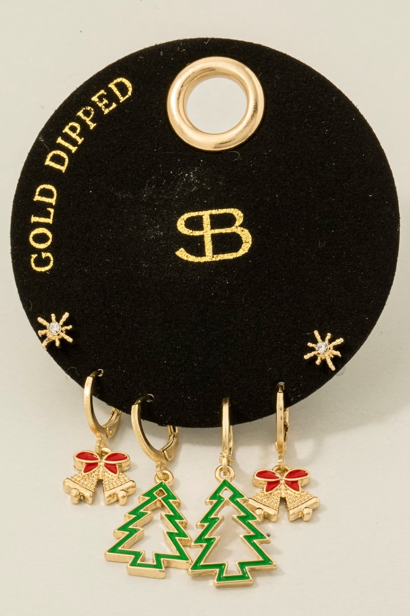 • This pair of earrings brings a stunning secret box gold dipped christmas theme stud and hoops set style. Immerse yourself in the world of understated glamour as this pair of earrings effortlessly exudes timeless appeal.