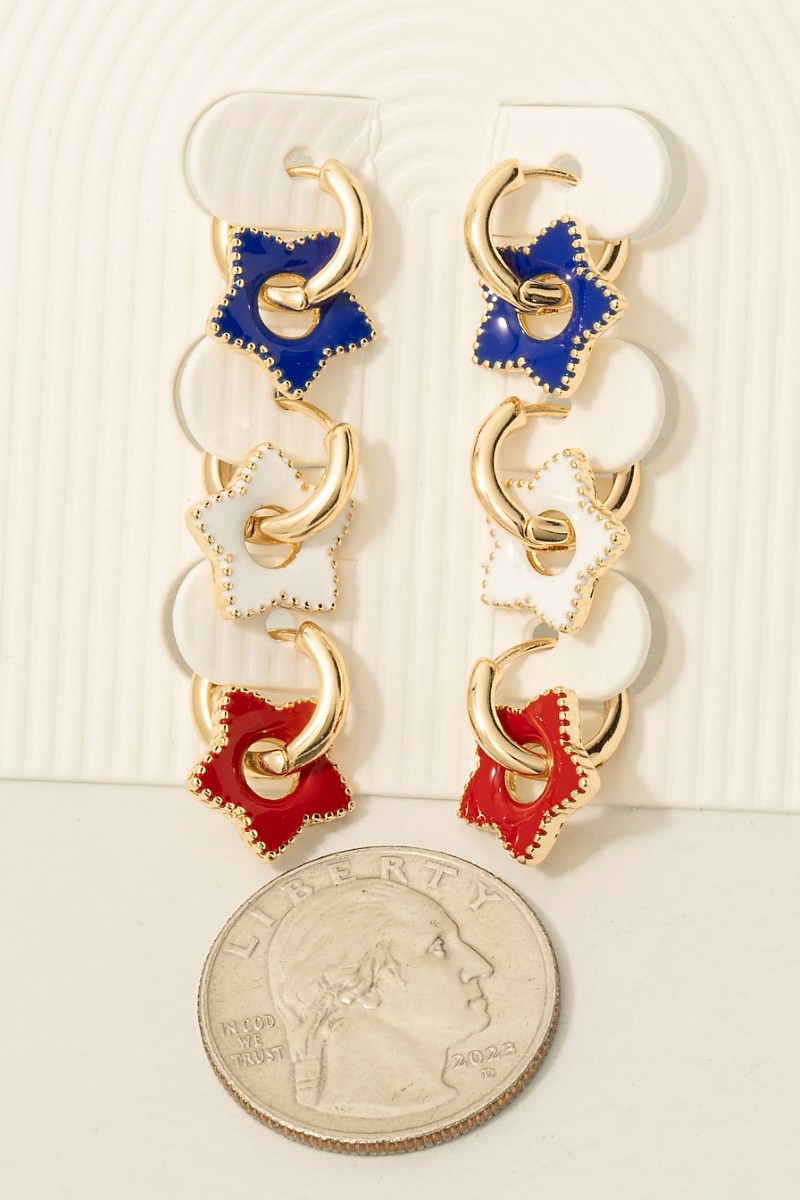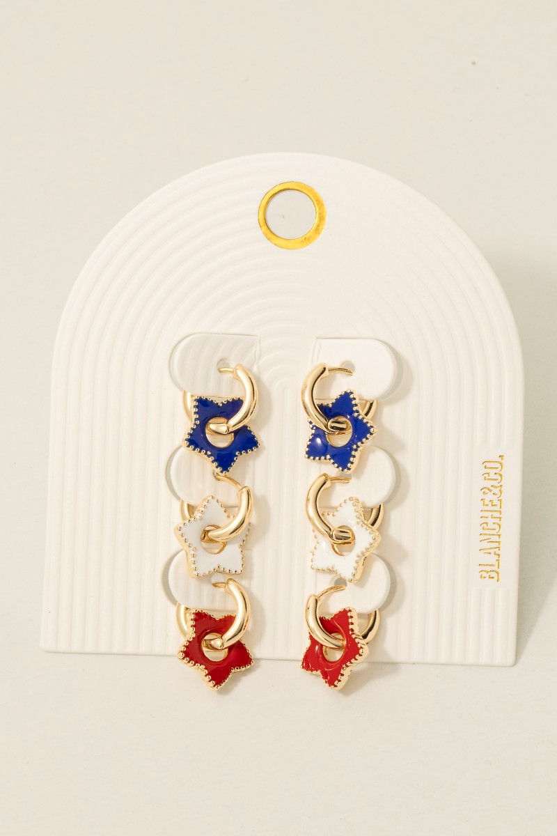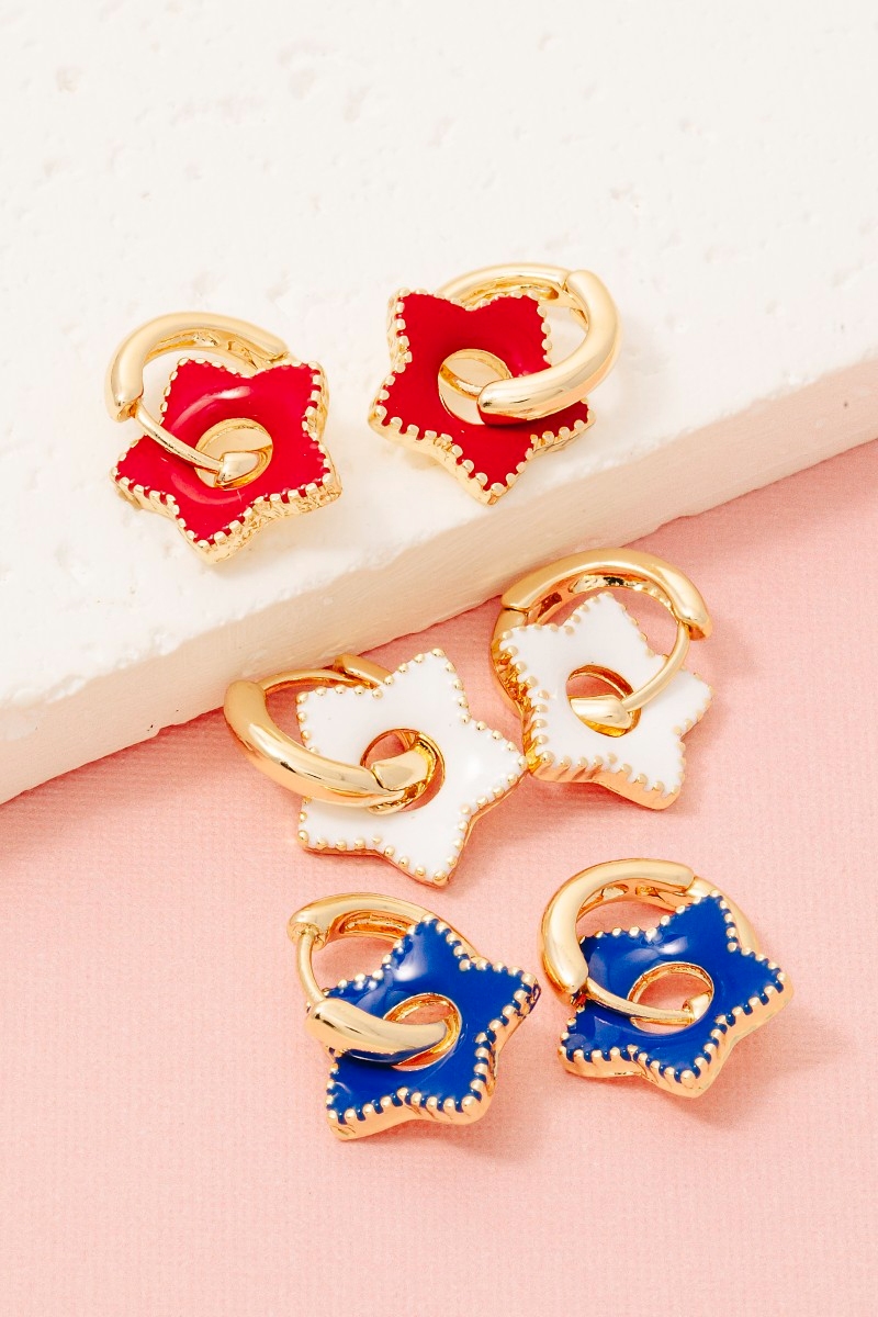 • This pair of hoop earrings brings a stunning usa colors enamel star charms set style. Discover the perfect balance of functionality and fashion.