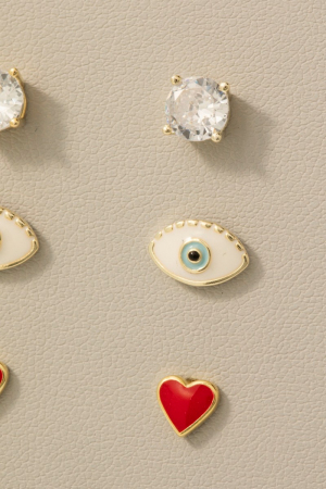 • This pair of stud earrings showcases a unique enamel heart evil eye and cubic zirconia gem set style. Elevate your ensemble with this chic, timeless pair of stud earrings.