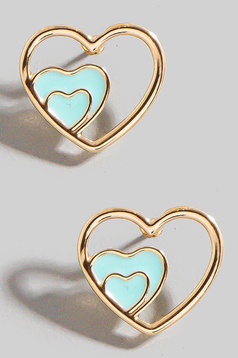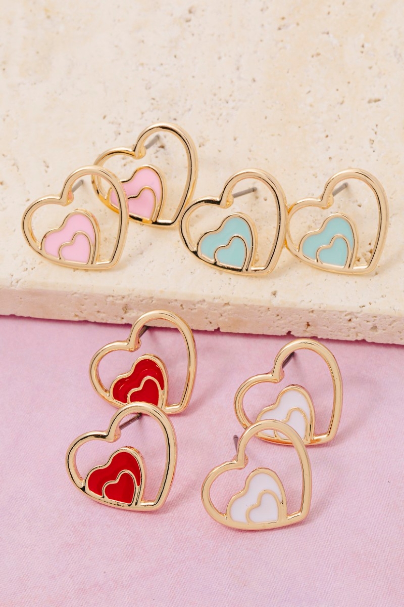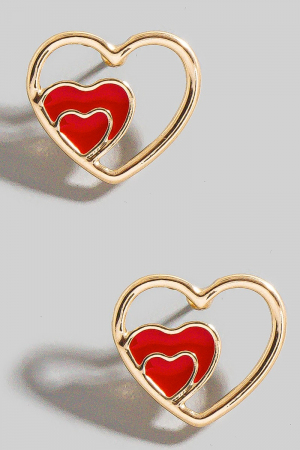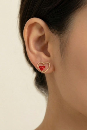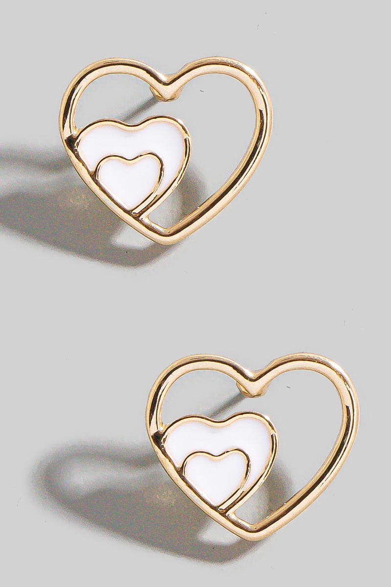 - This pair of stud earrings showcases a unique enamel heart layered style. Elevate your ensemble with this pair of stud earrings that effortlessly captures the essence of refined fashion.