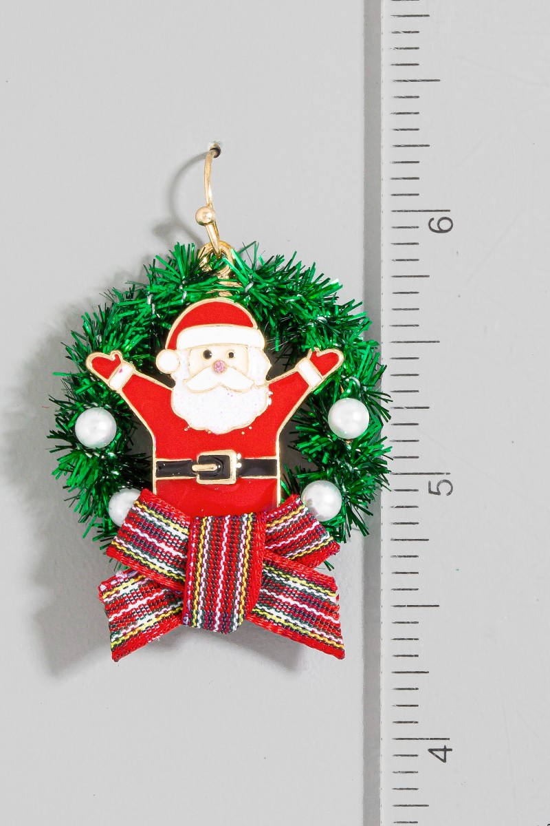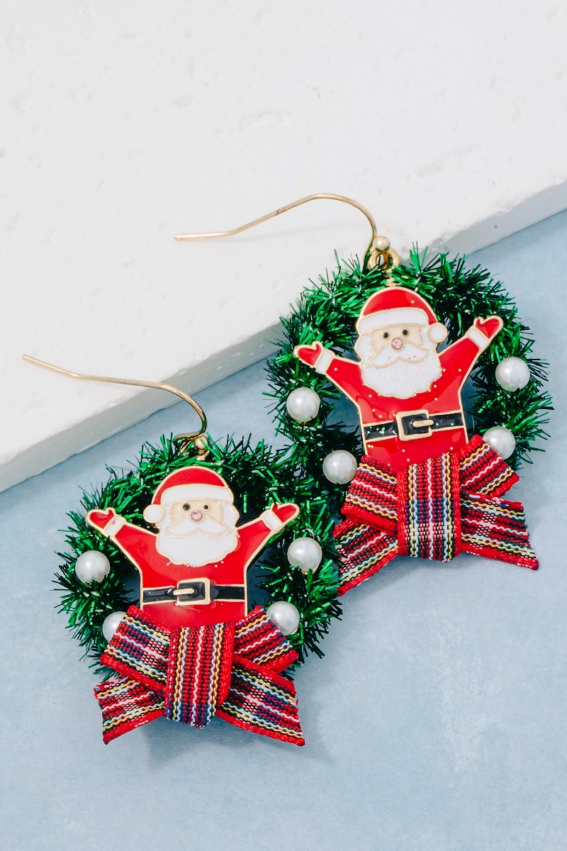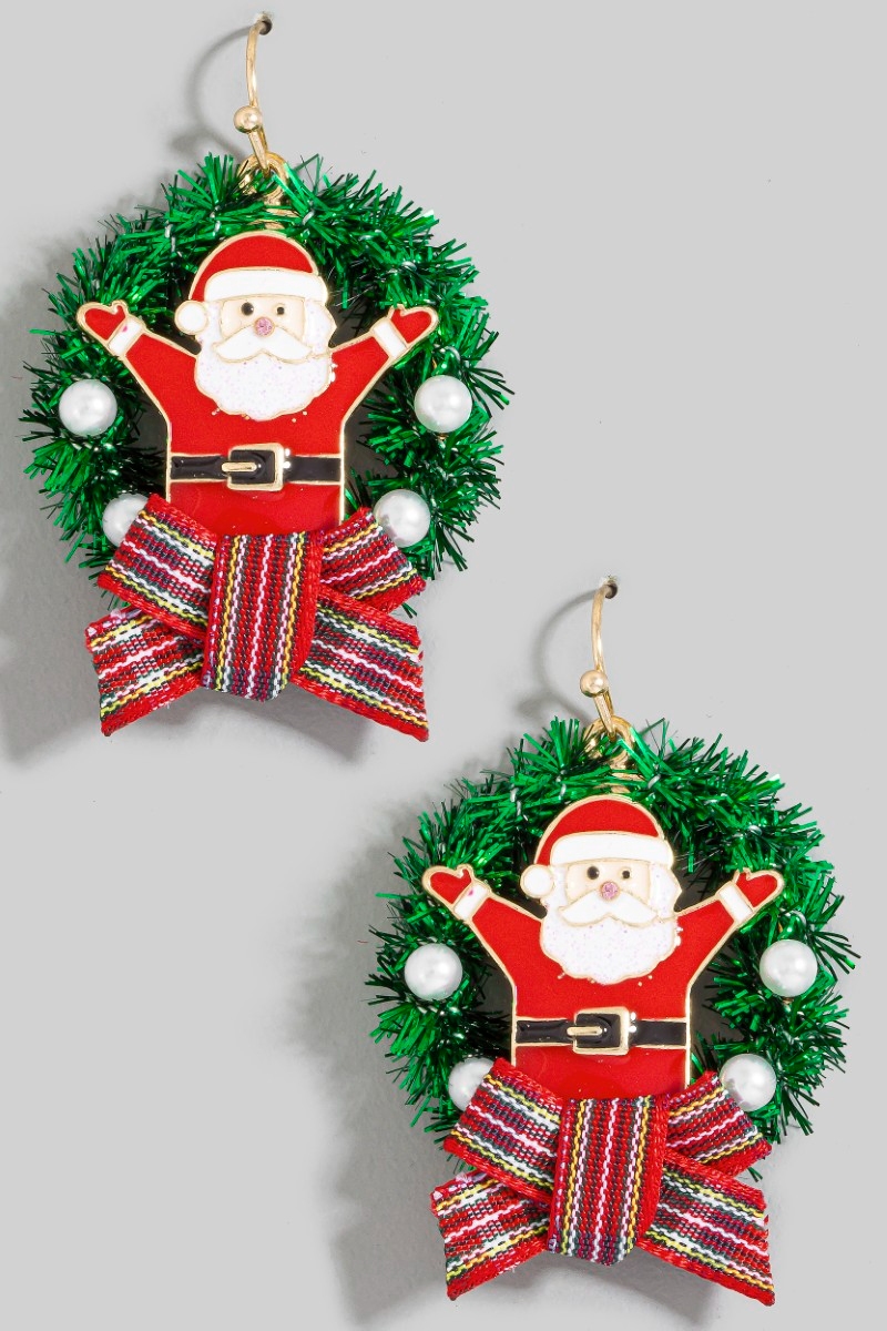- This pair of dangle earrings introduces a unique enamel santa claus wreath christmas holiday style. Unveil a new dimension of sophistication as this pair of dangle earrings effortlessly enhances the elegance of your ensemble.
