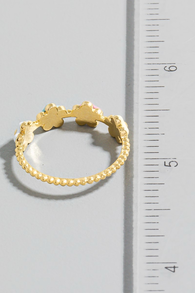• This ring brings a unique gold dipped enamel flower station style. Immerse yourself in the details of design, as this ring effortlessly becomes a conversation starter.