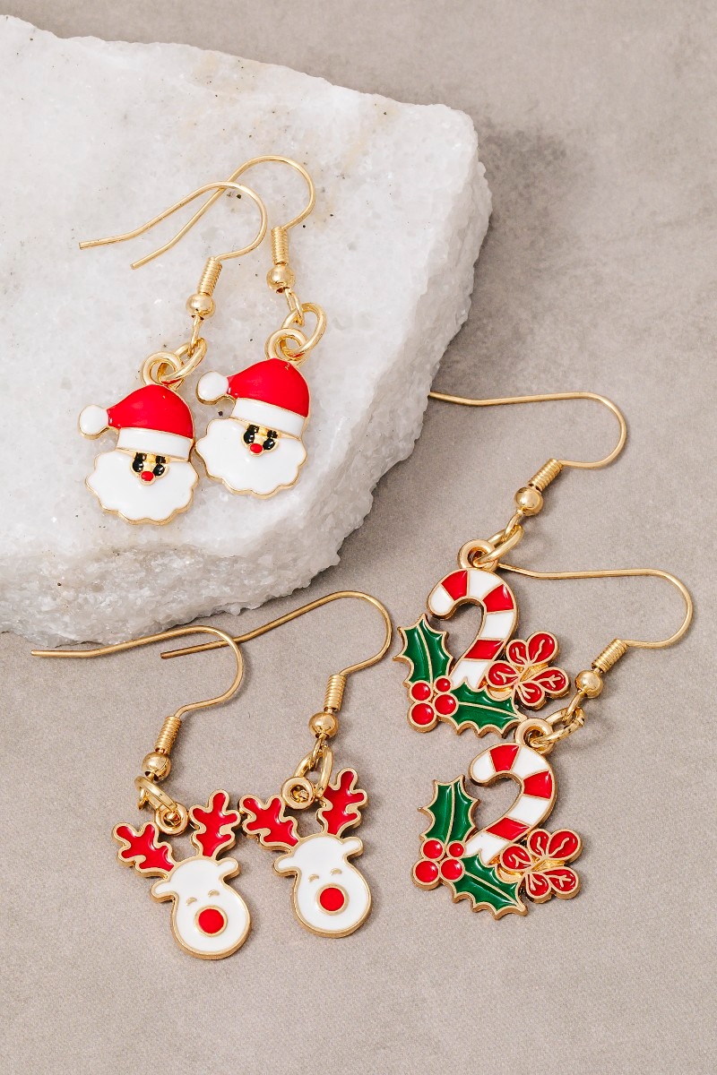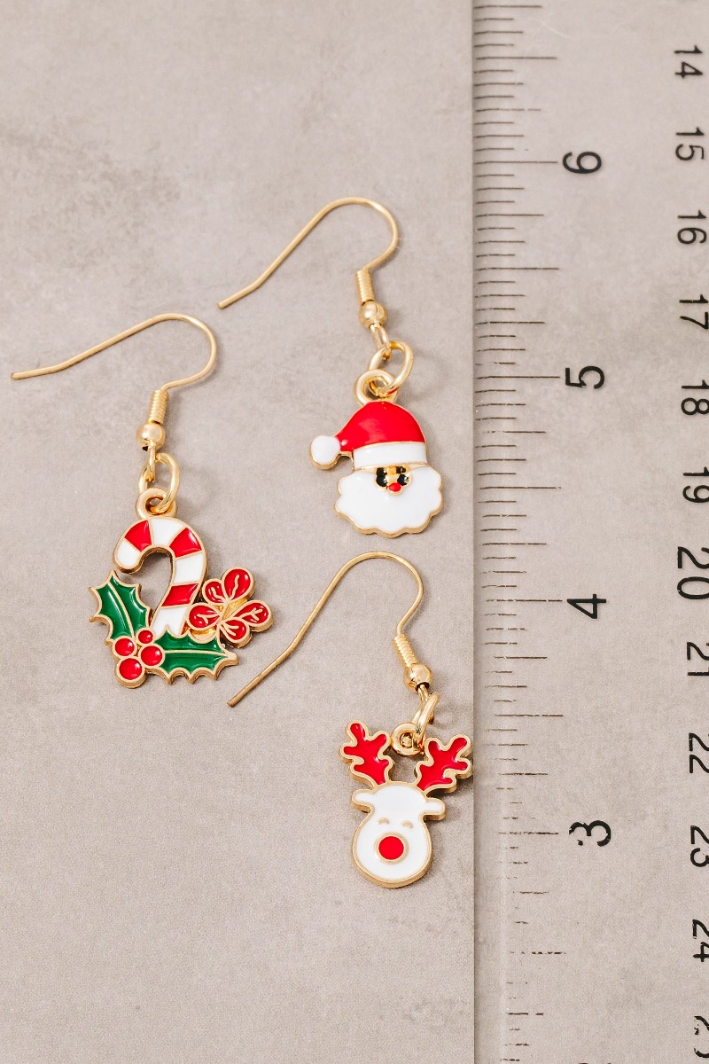 Mixed 3Pc Enamel Christmas Dangle Earrings Set