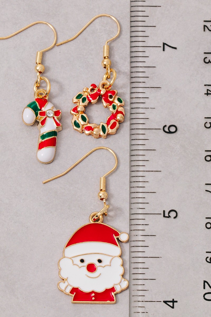 • This pair of dangle earrings displays a fashionable mixed 3pc enamel christmas set style. Delight in the nuanced details that make this pair of dangle earrings a testament to fine design and impeccable taste.