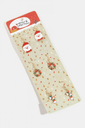 Secret Box Gold Dipped Mixed Christmas Theme Earrings Set