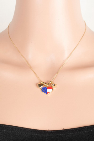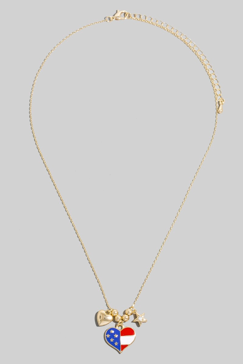 • This chain necklace brings a unique cz stud star and enamel usa heart charms style. Embark on a journey of sartorial refinement as this chain necklace effortlessly complements your fashion sense.