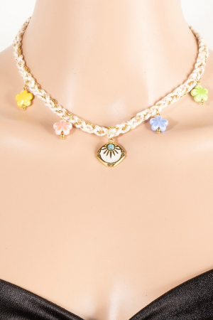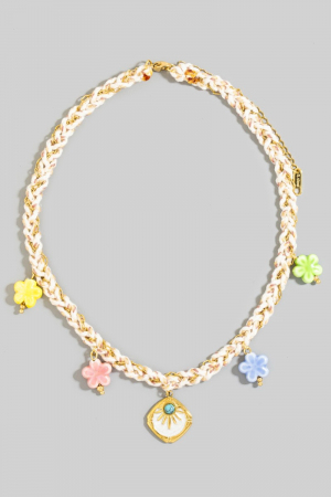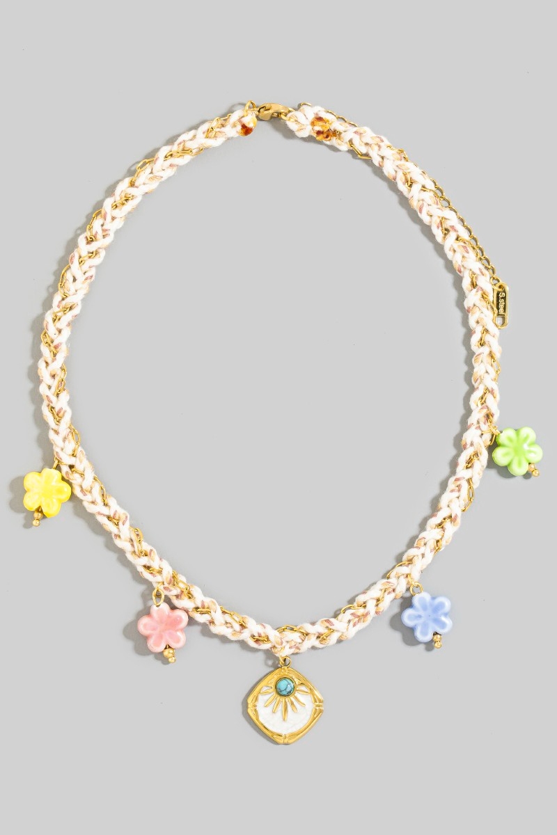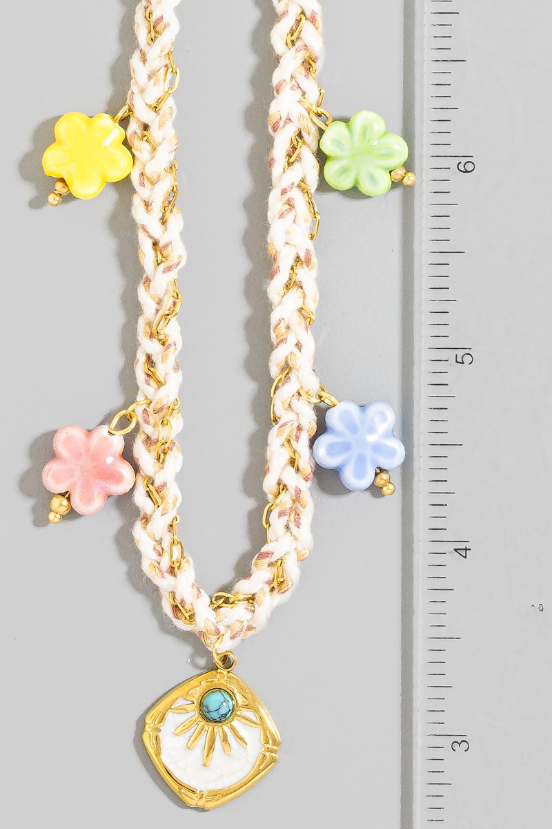 • This necklace introduces a stunning stainless steel enamel flower charms and pendant braided style. Indulge in the artistry of accessorizing with this unique piece.