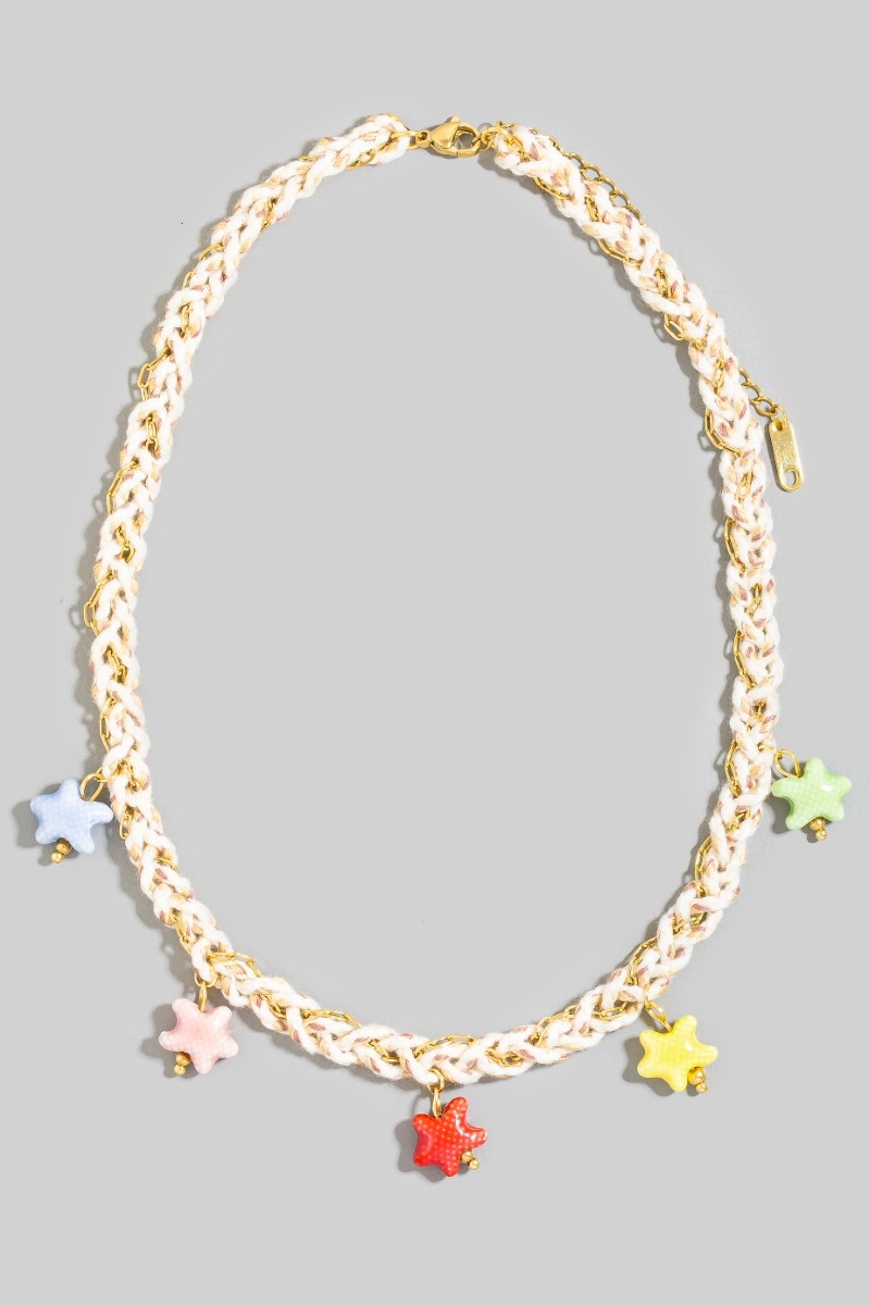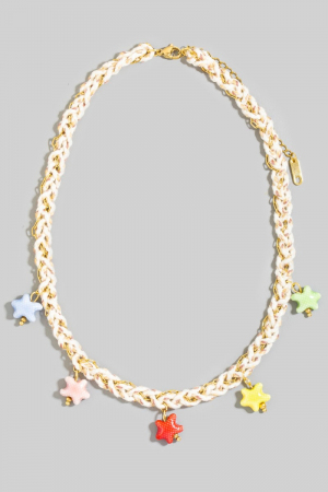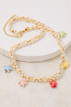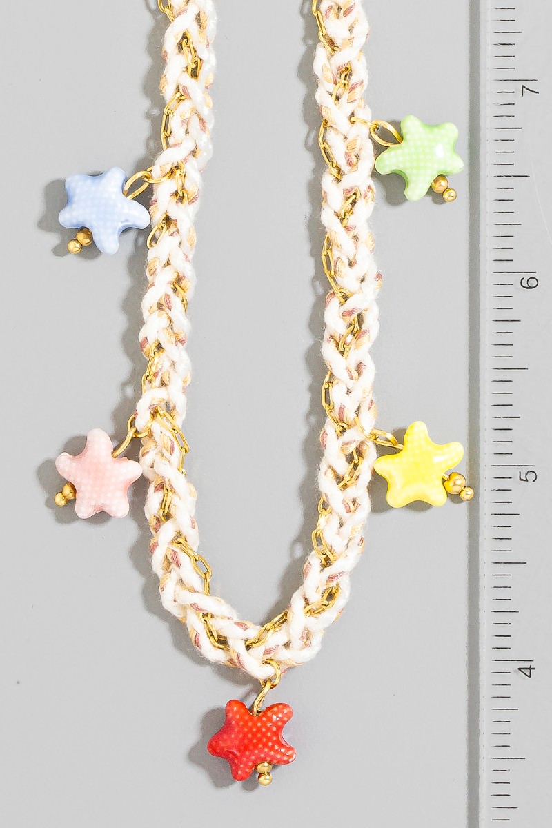 • This necklace showcases a unique stainless steel enamel star charms cord and chain braided style. Delight in the nuanced details that make this necklace a testament to fine design and impeccable taste.