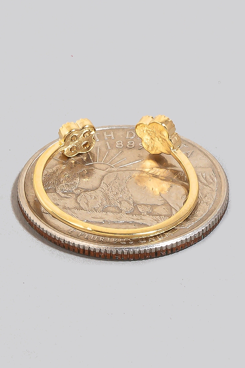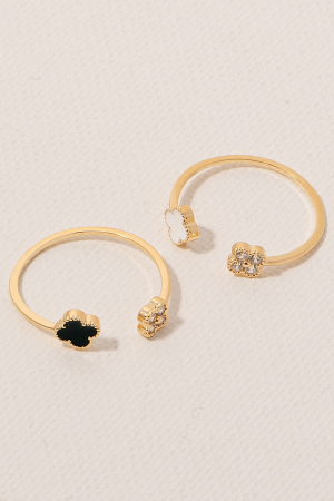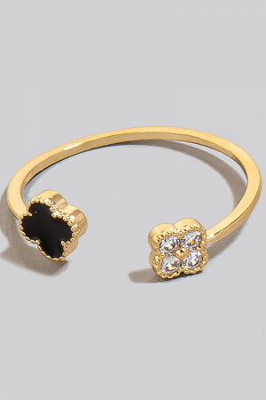 - This ring adds a modern enamel and cubic zirconia clover open band style. Experience a subtle blend of modernity and classic charm as this ring effortlessly adorns your ensemble.