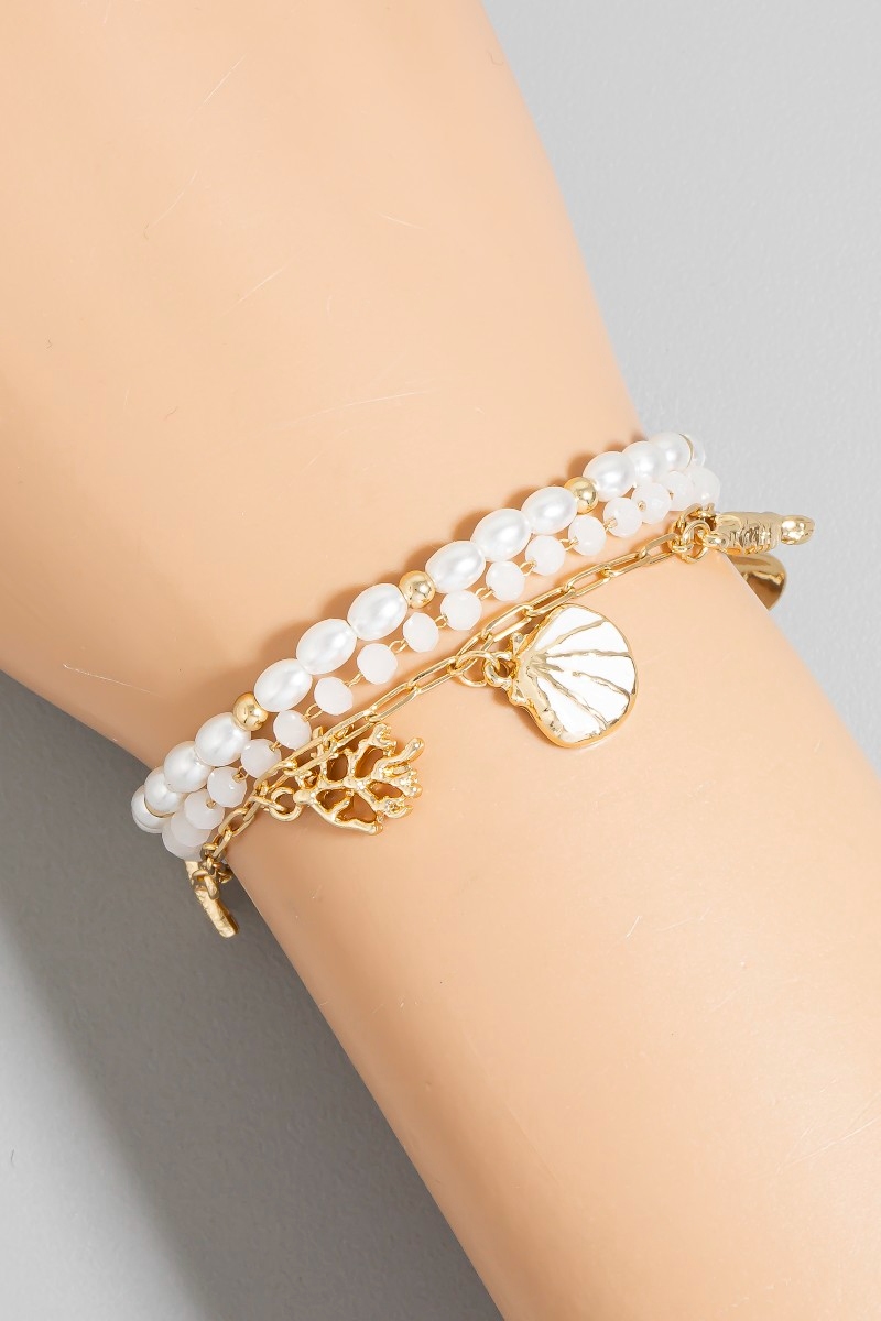Heart Charm Pearl And Metallic Beads Bracelet Set