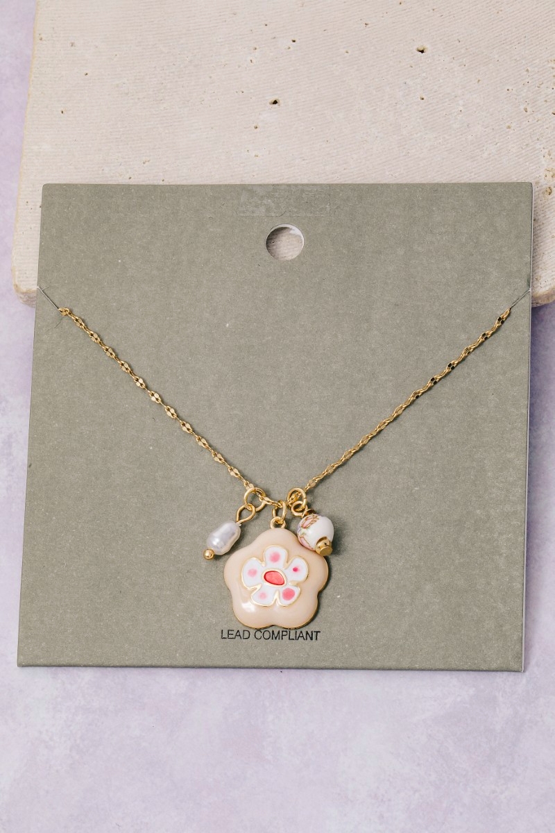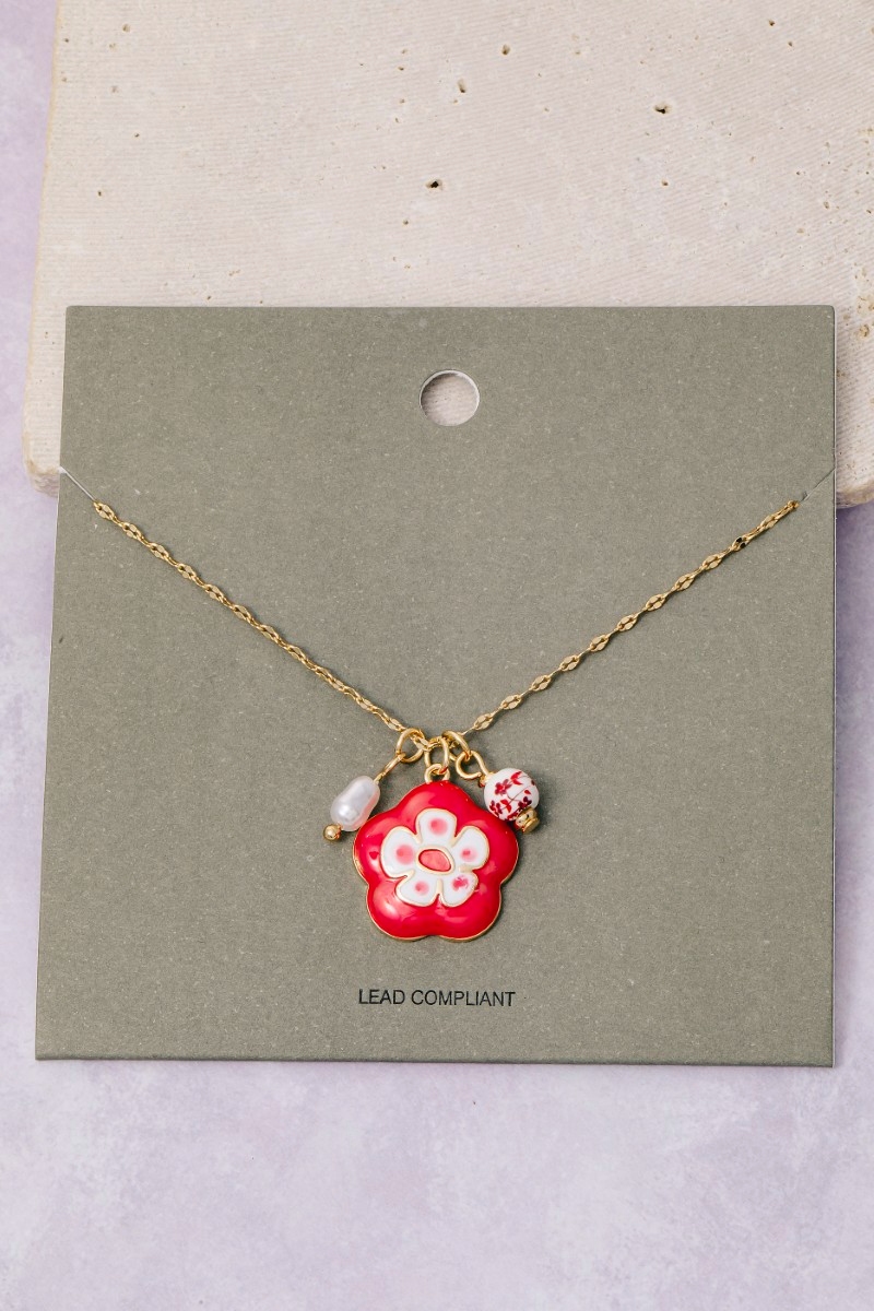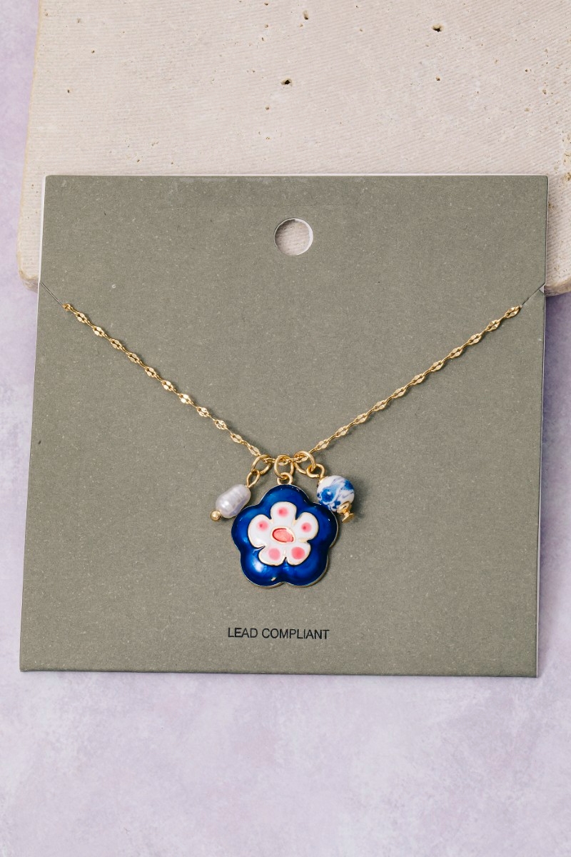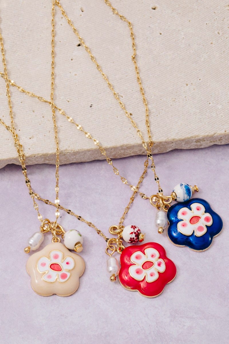 - This chain necklace showcases a unique enamel and ceramic floral charms style. Elevate your ensemble with this chic, timeless chain necklace.