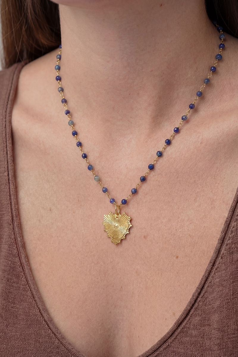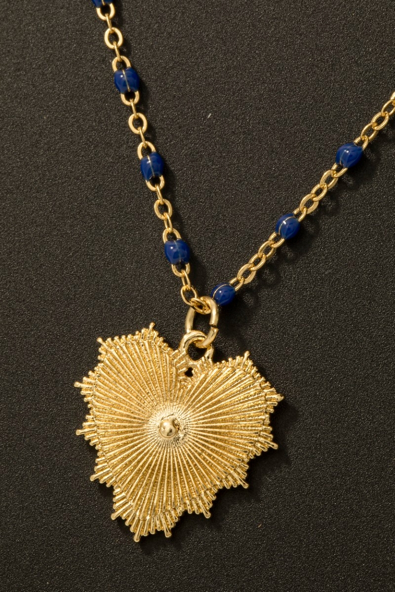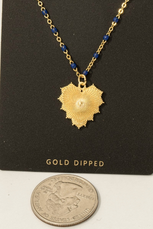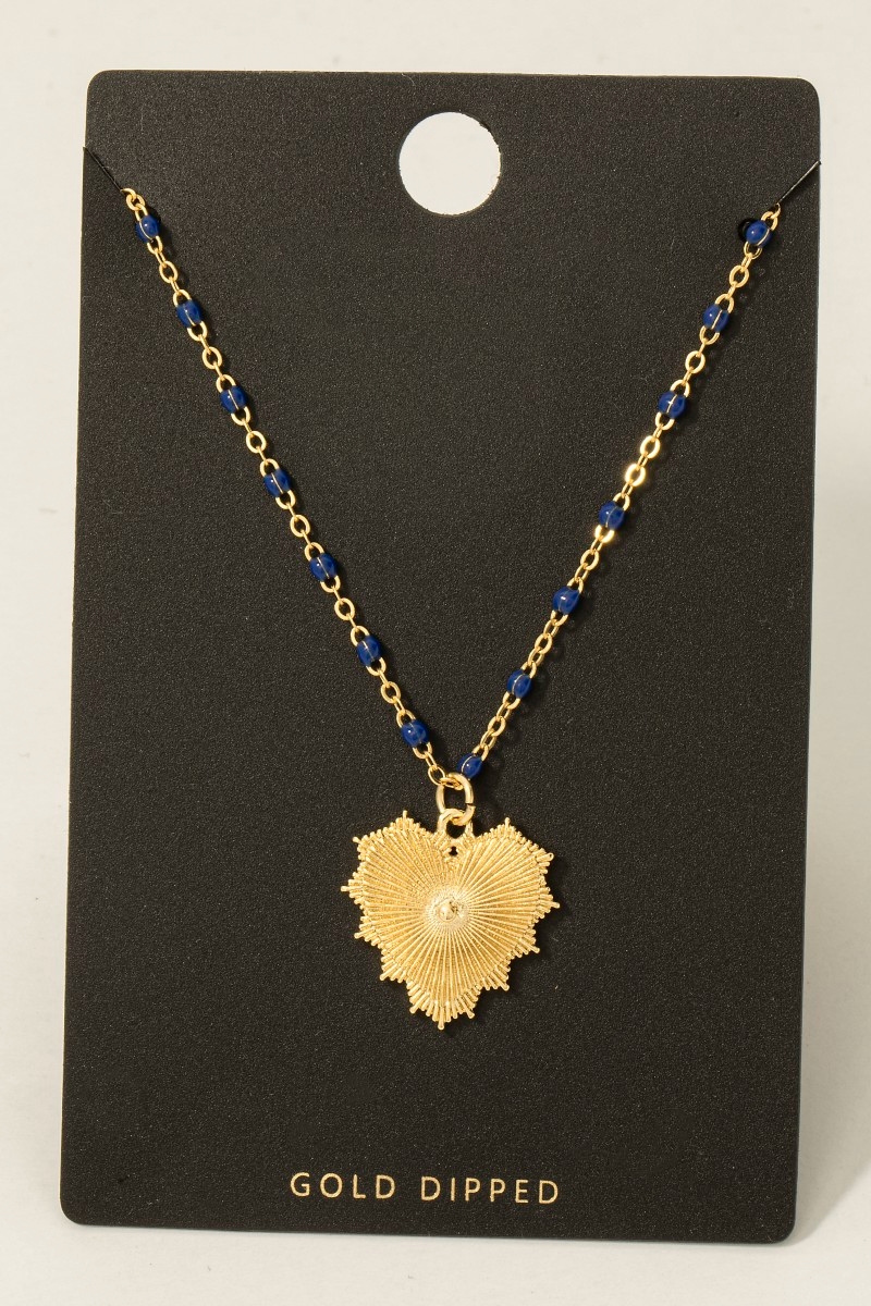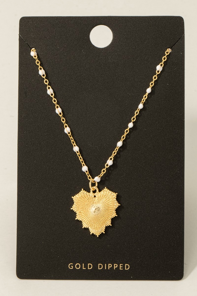 - This necklace adds a modern gold dipped bead and chain heart pendant style. Step into a world of refined taste as this necklace effortlessly refines the details of your outfit.