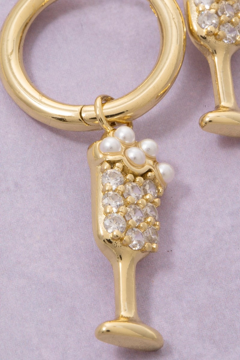 - This pair of hoop earrings adds a modern gold dipped cubic zirconia pearl champagne charm style. Savor the craftsmanship that goes beyond the ordinary, as this pair of hoop earrings effortlessly captivates attention.
