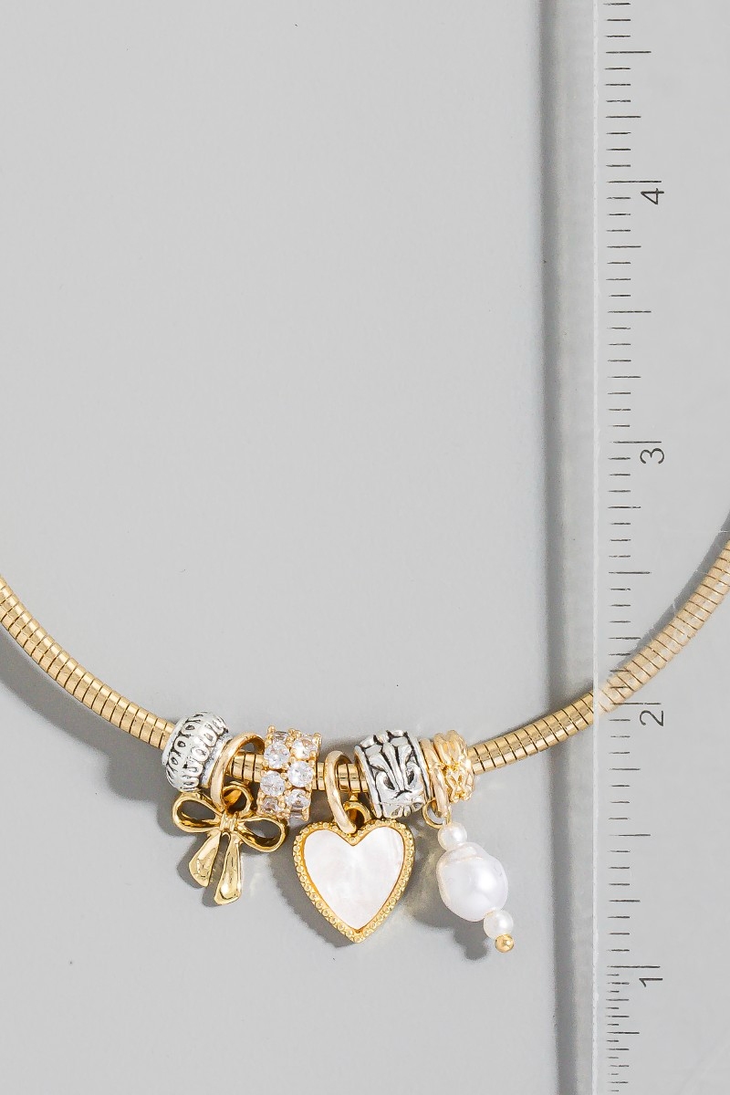 - HEART, PEARL, AND BOW CHARMS