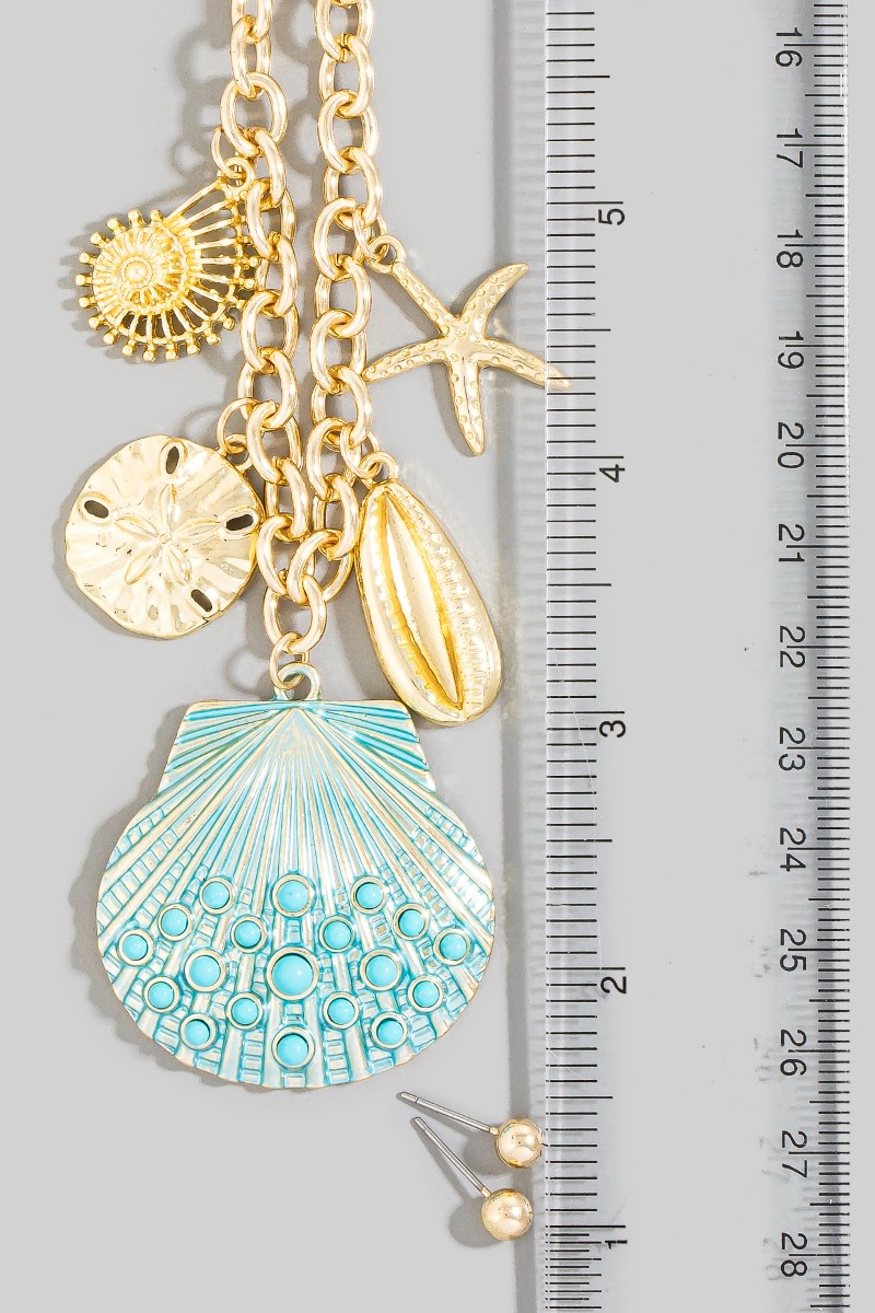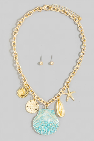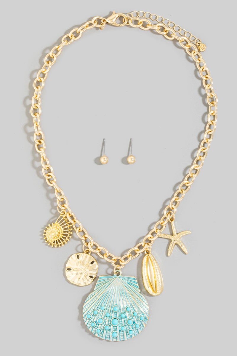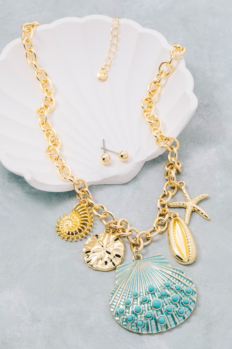 - This necklace set displays a fashionable assorted sealife seashell charms style. Discover the perfect balance of functionality and fashion.