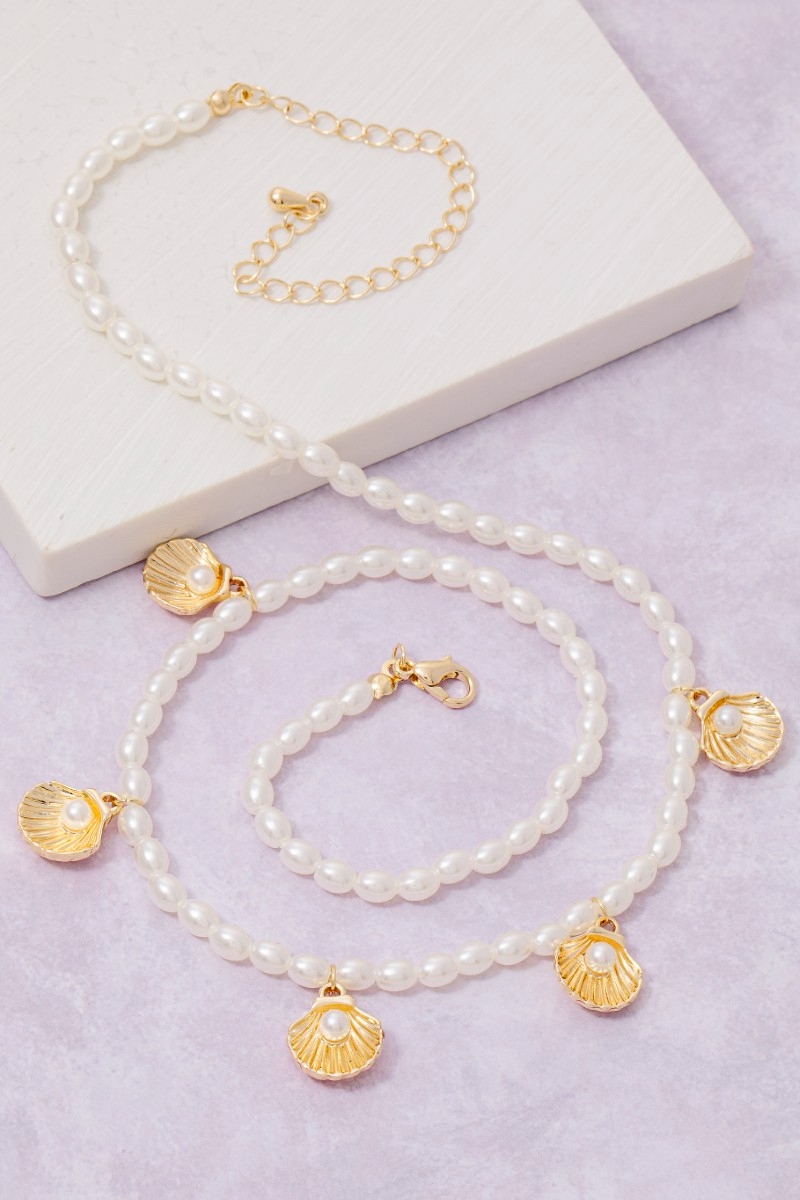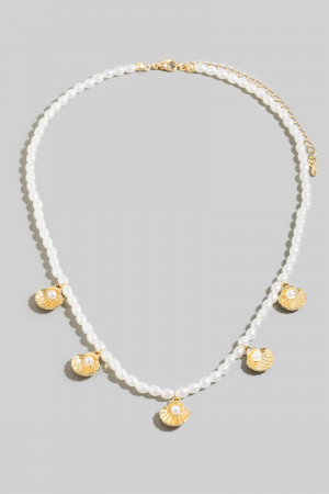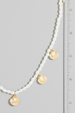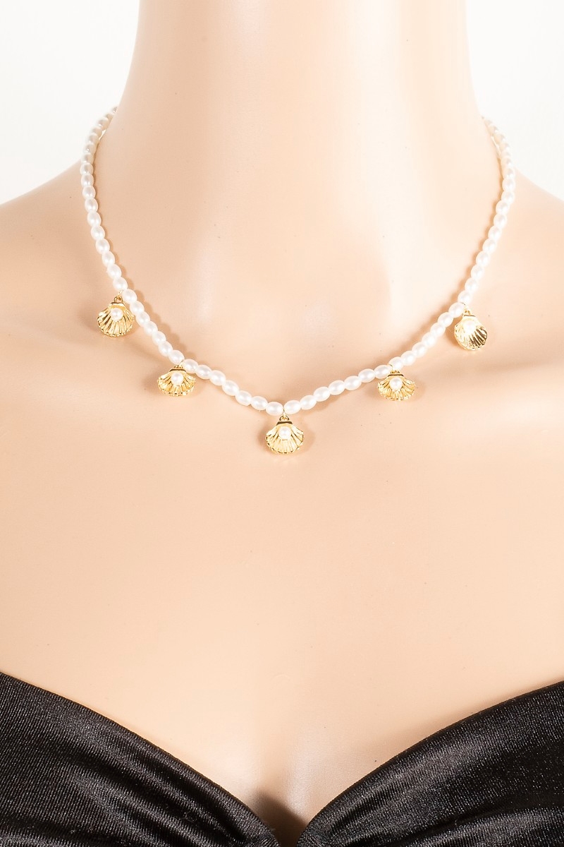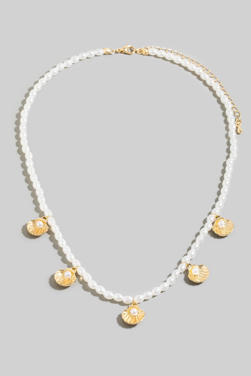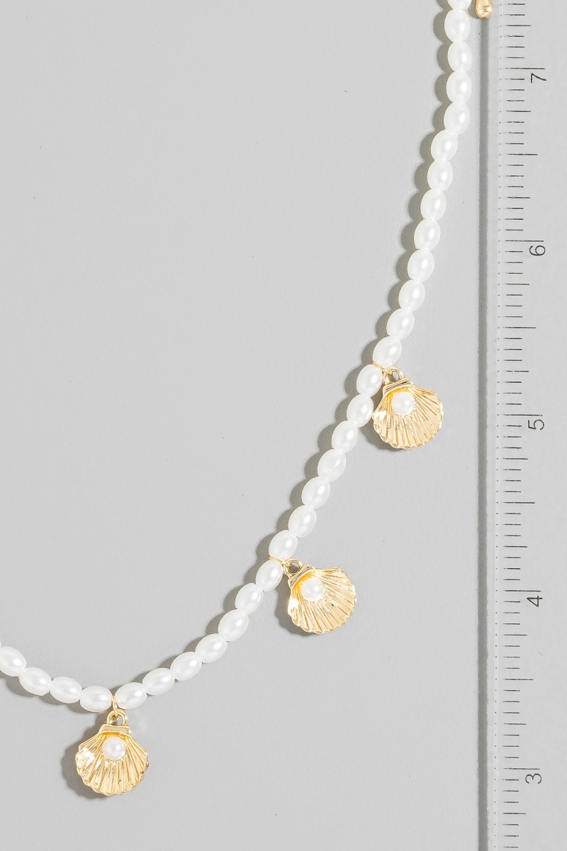 • This necklace introduces a stunning clam shell charms pearl beaded style. Delight in the nuanced details that make this necklace a testament to fine design and impeccable taste.