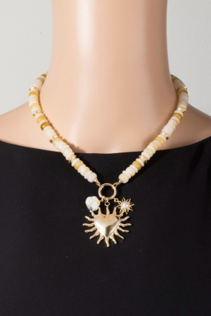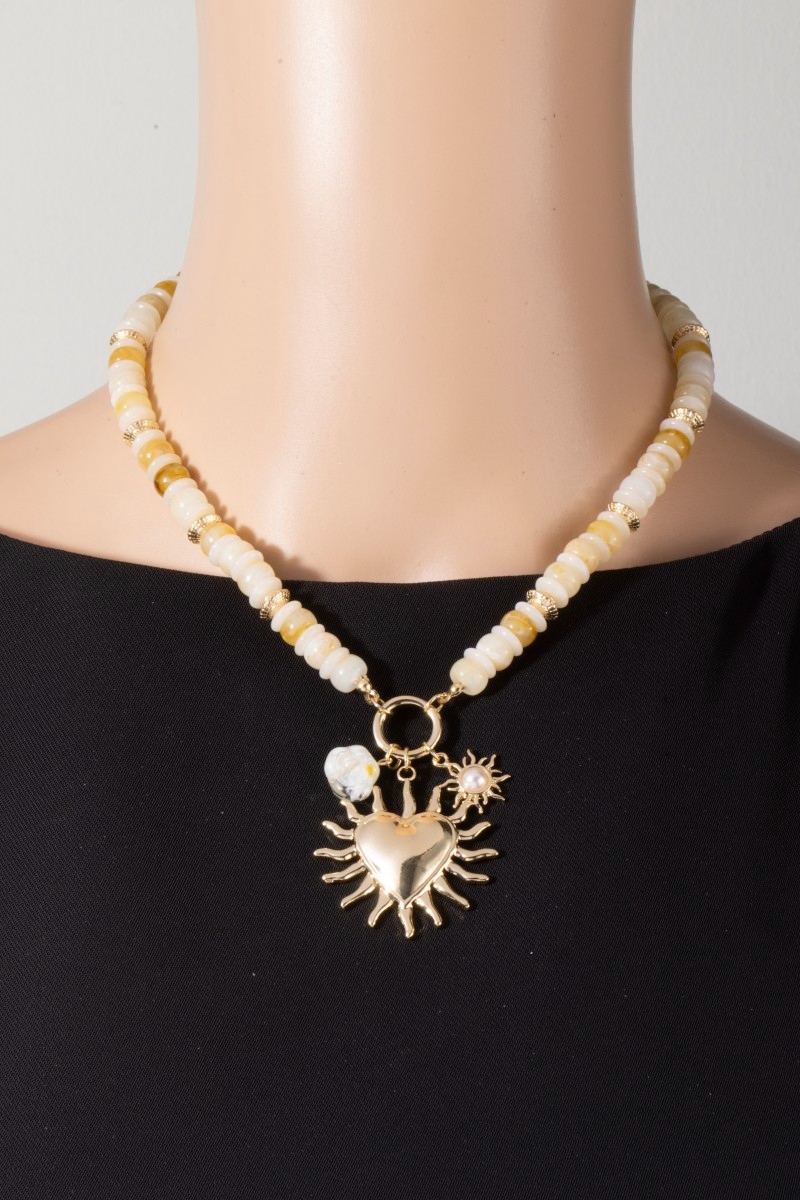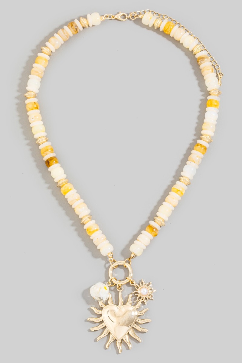 - This pendant necklace displays a vibrant flaming heart and stone pendants beaded necklace style. Elevate your ensemble with this chic, timeless pendant necklace.