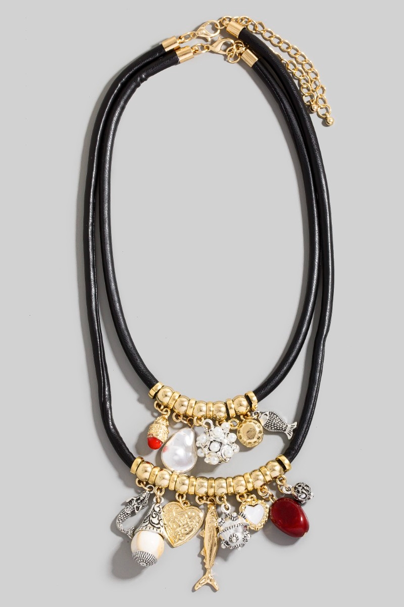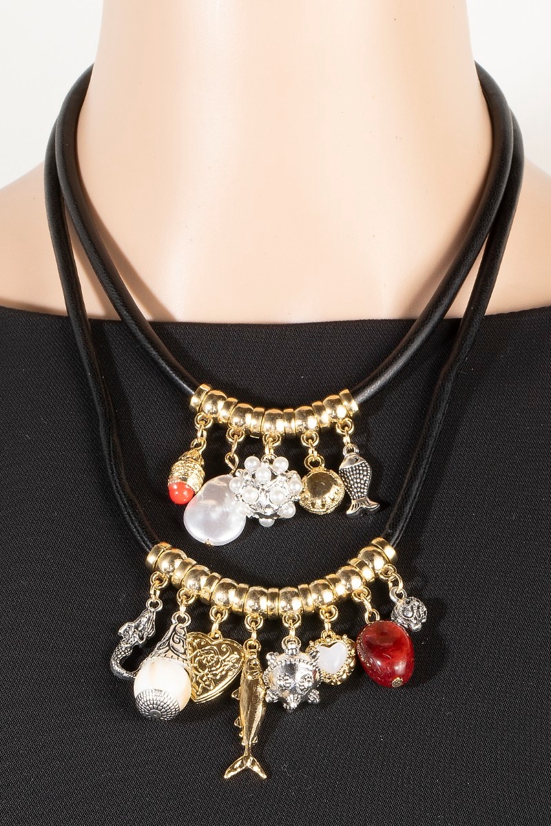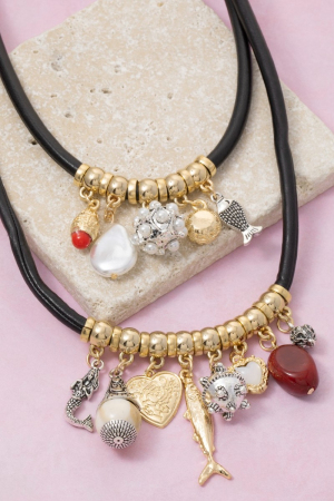 • This necklace brings a stunning heart pearl and sea life charms layered cord style. Indulge in the allure of exquisite craftsmanship as this necklace effortlessly adds a touch of luxury to your attire.
