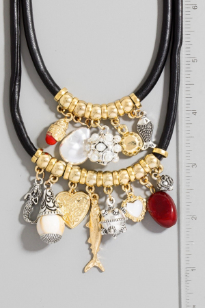 Sea Life Charms Knotted Satin Necklace