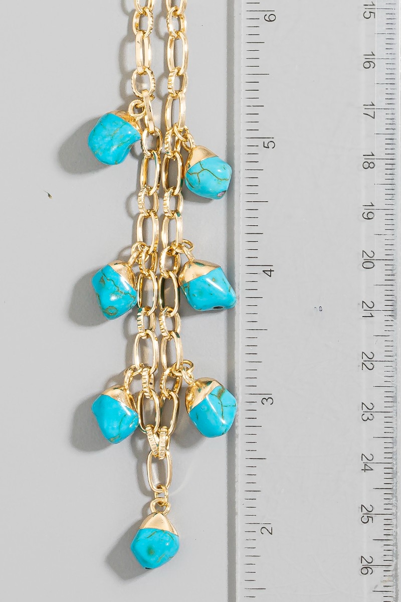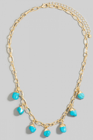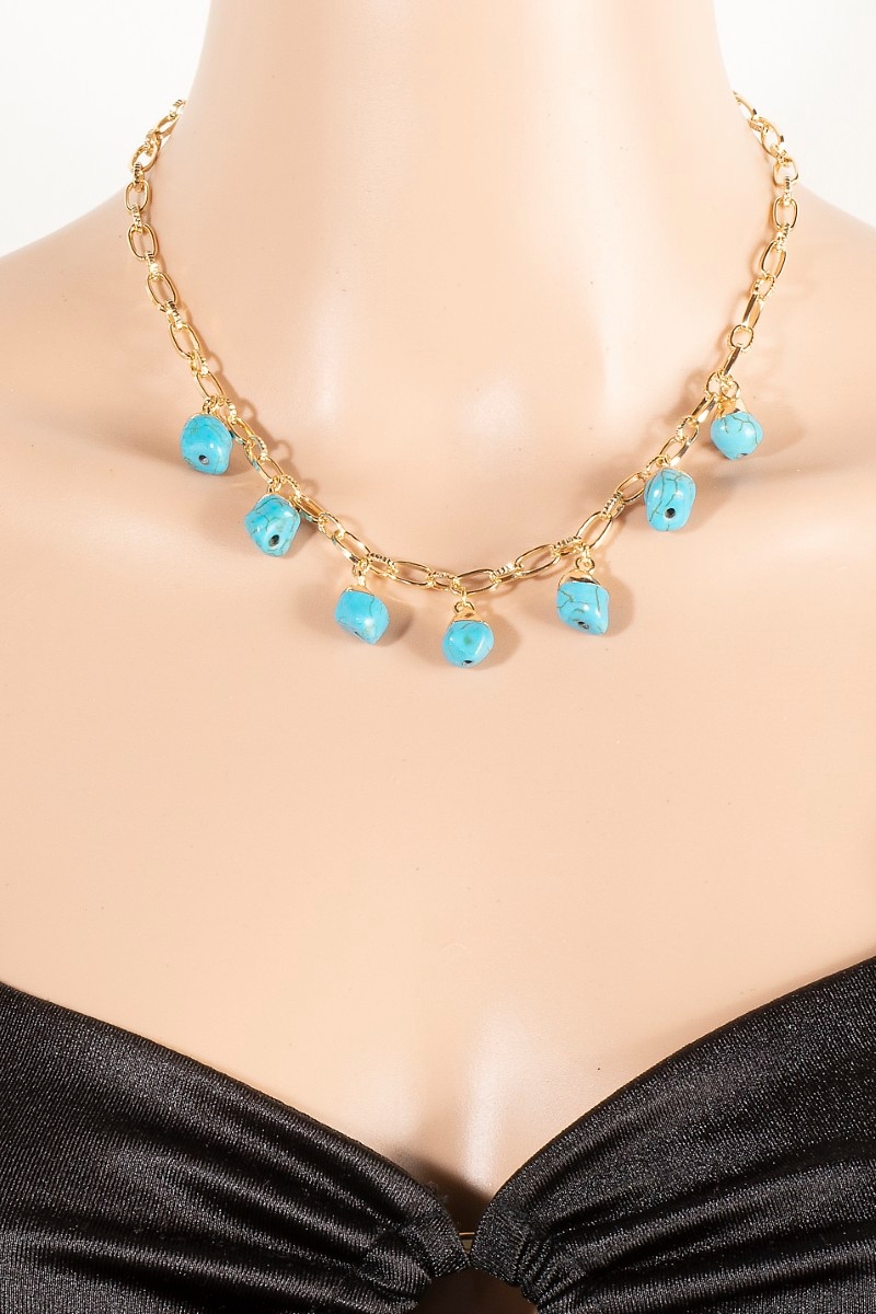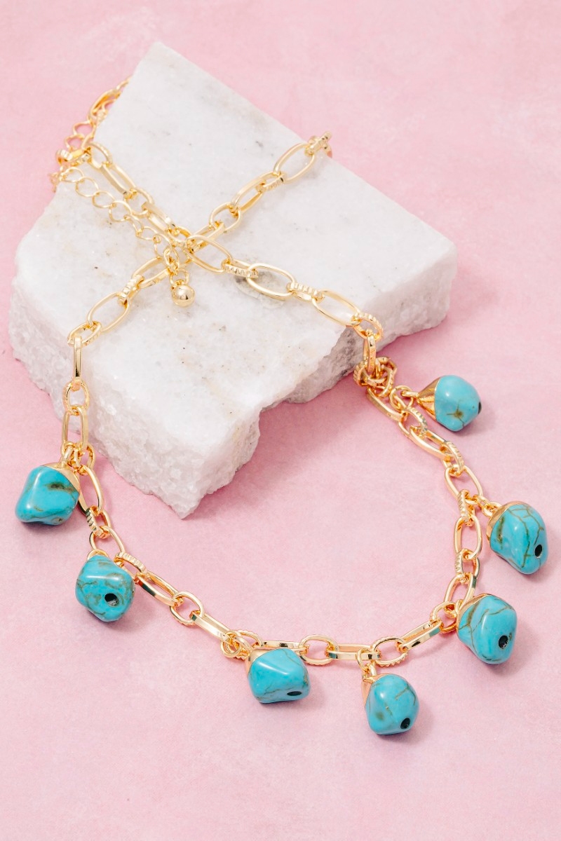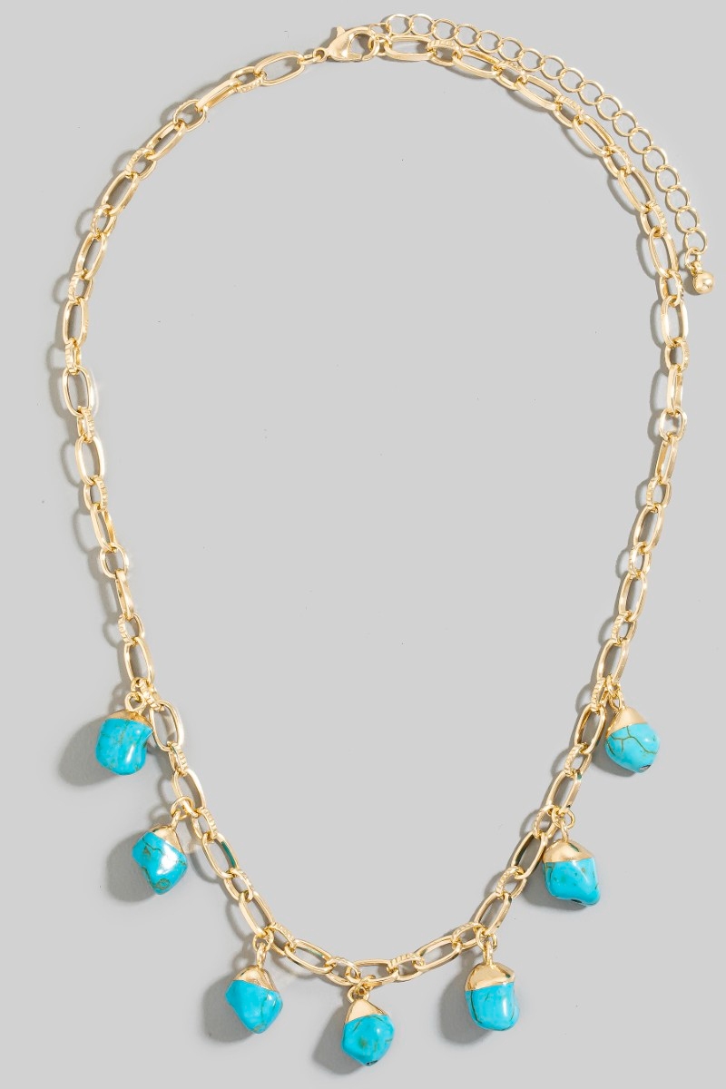 • This chain necklace brings a luxurious turquoise stone charms style. Revel in the intricate design that effortlessly distinguishes this chain necklace, making it a statement piece.