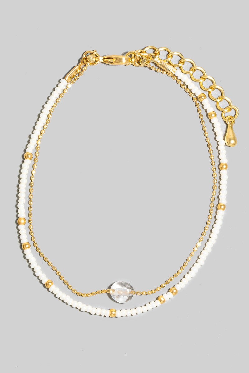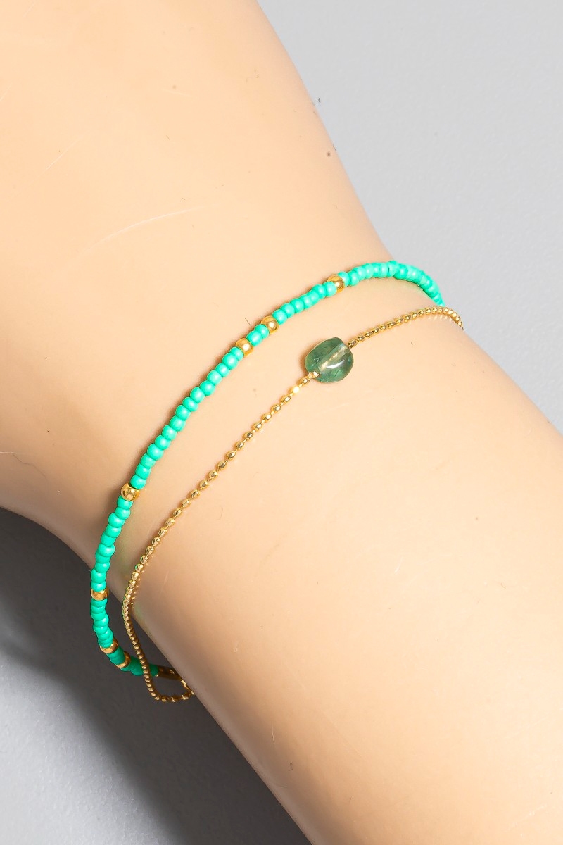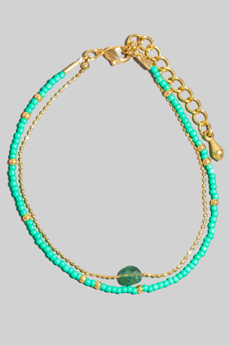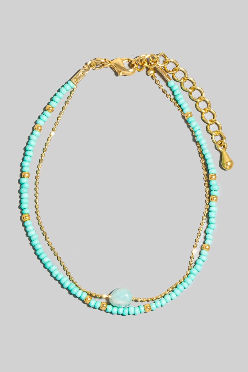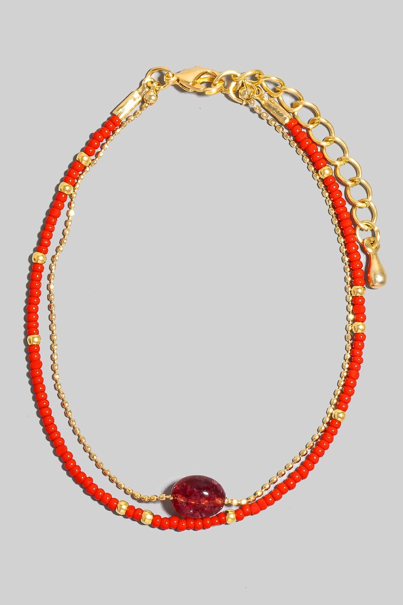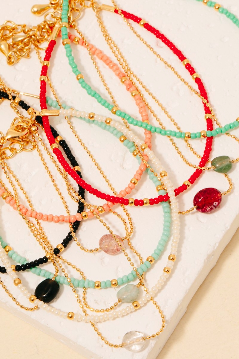 • This bracelet showcases a unique oval stone charm dainty layered beaded style. Delight in the intricate details that make this bracelet an essential element in expressing your fashion identity.