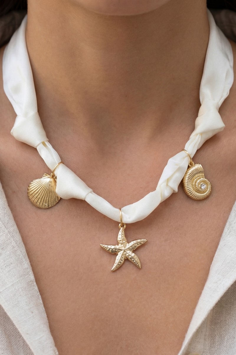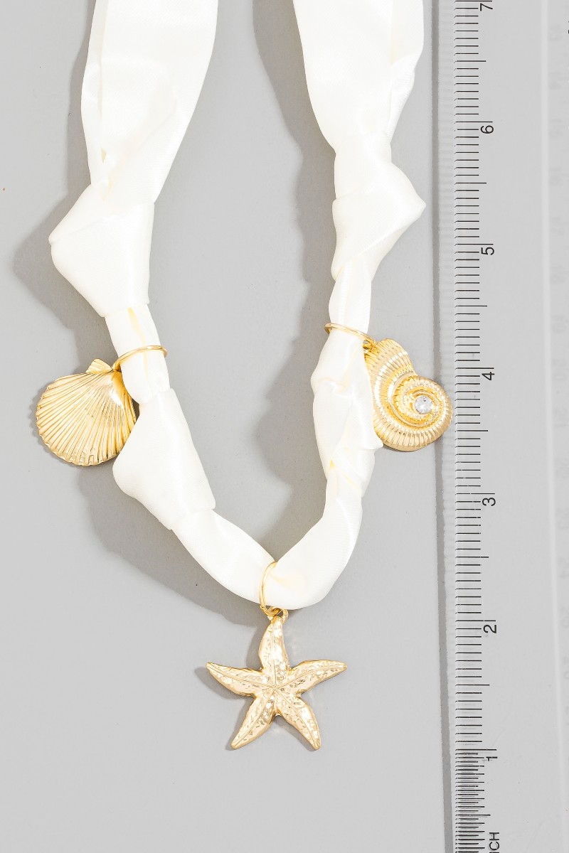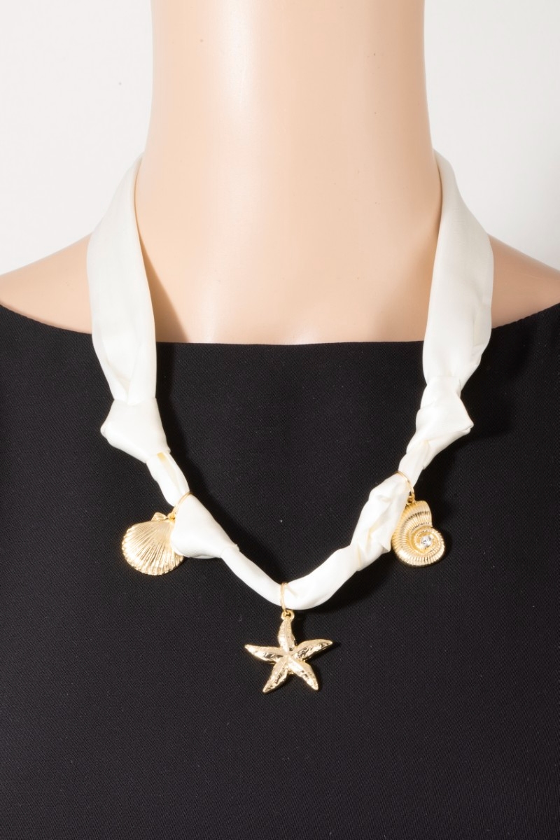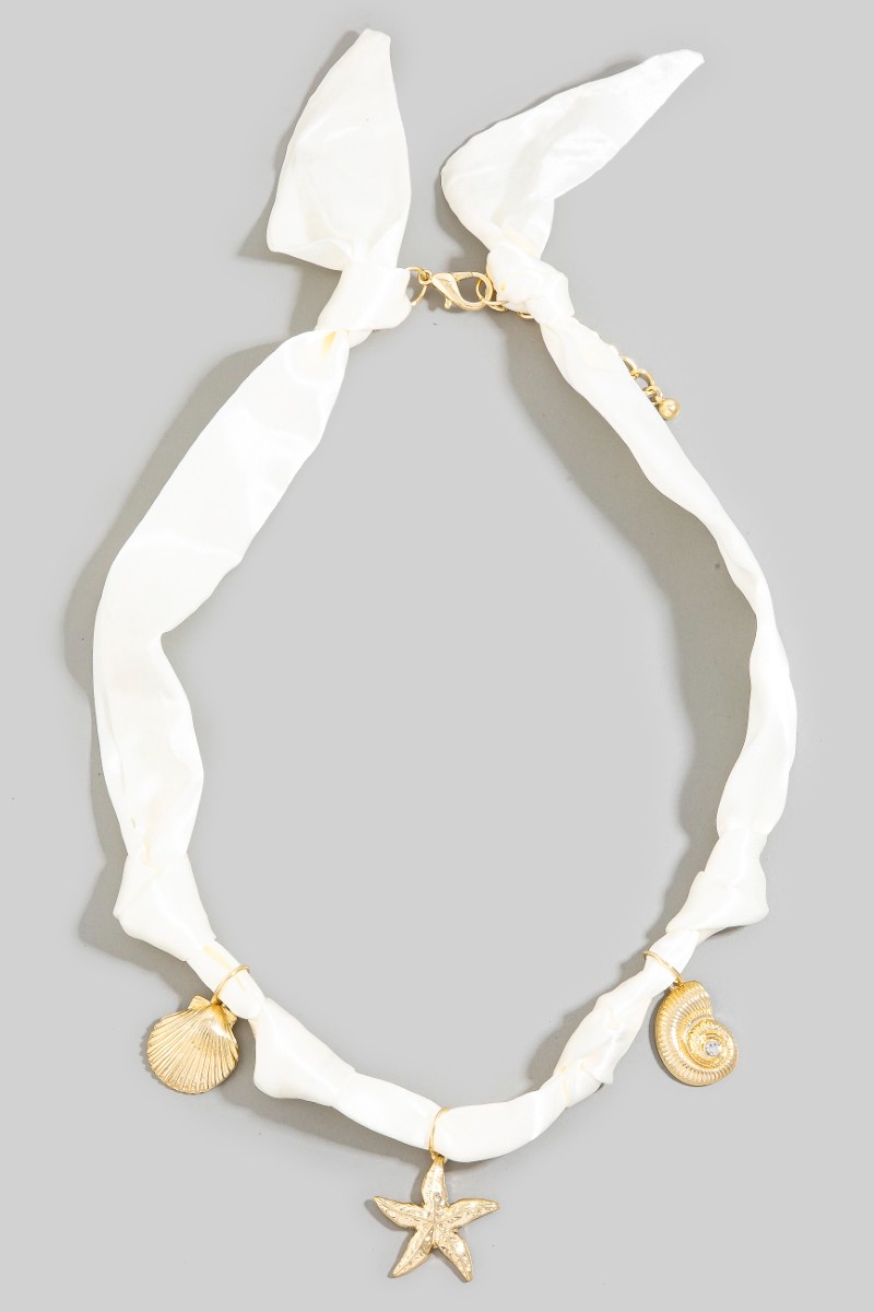 - This necklace displays a vibrant sea life charms knotted satin style. Celebrate individual style with this versatile, eye-catching addition.