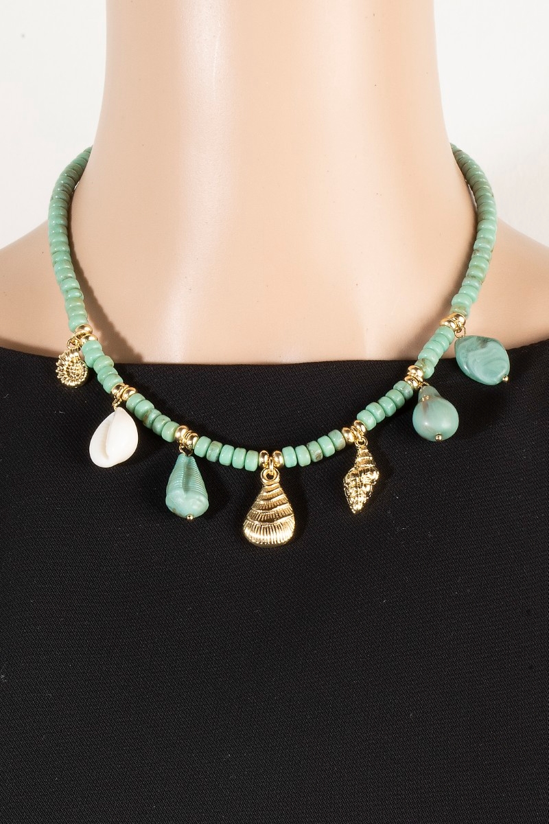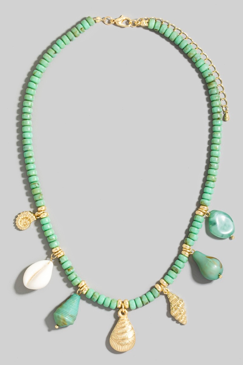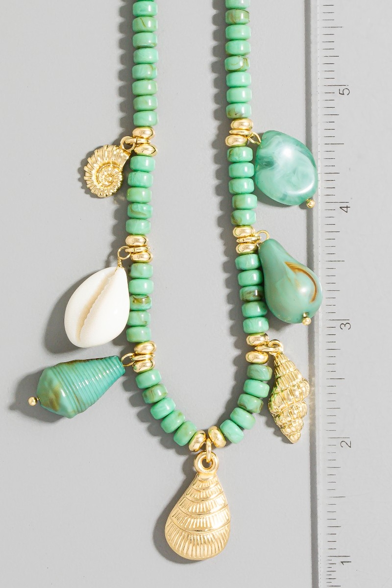 - This necklace showcases a unique stone beads and sea life charms style. Indulge in the artistry of accessorizing with this unique piece.